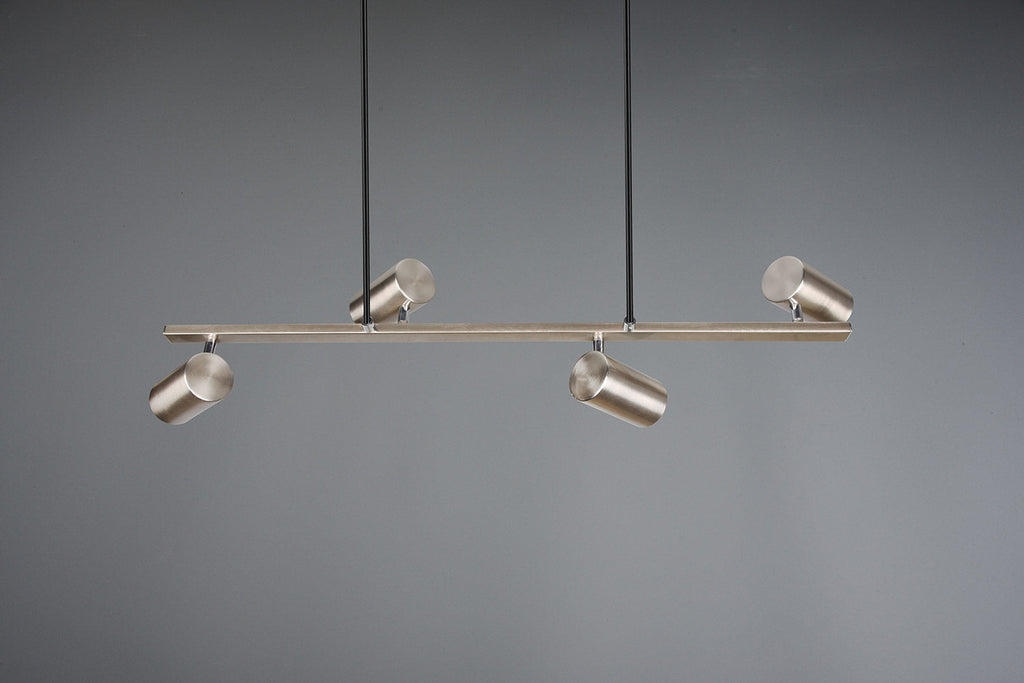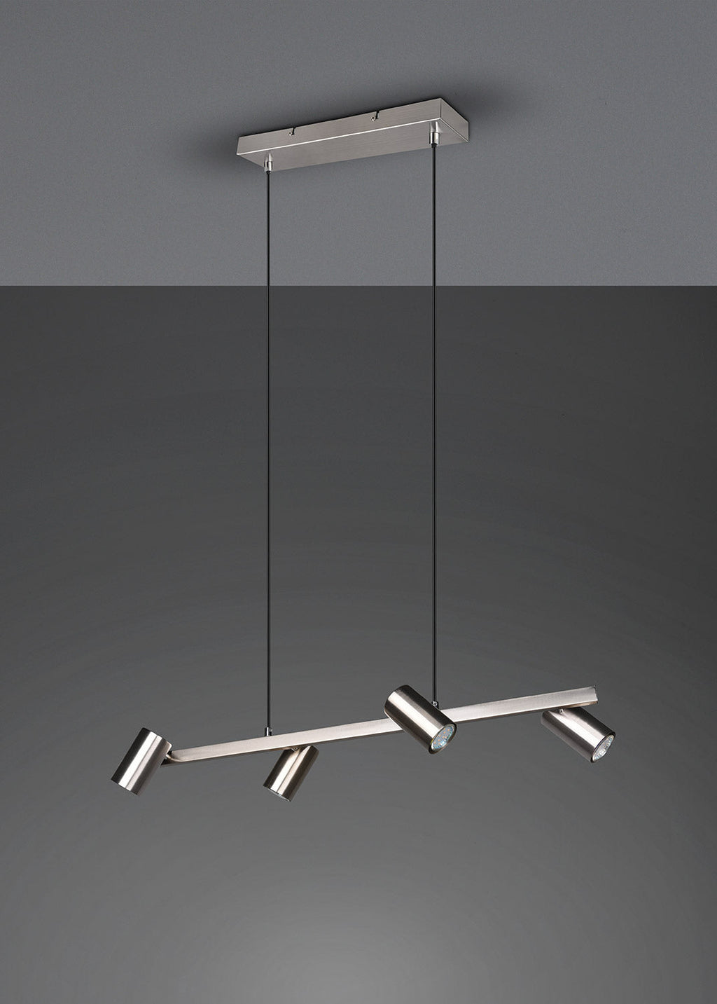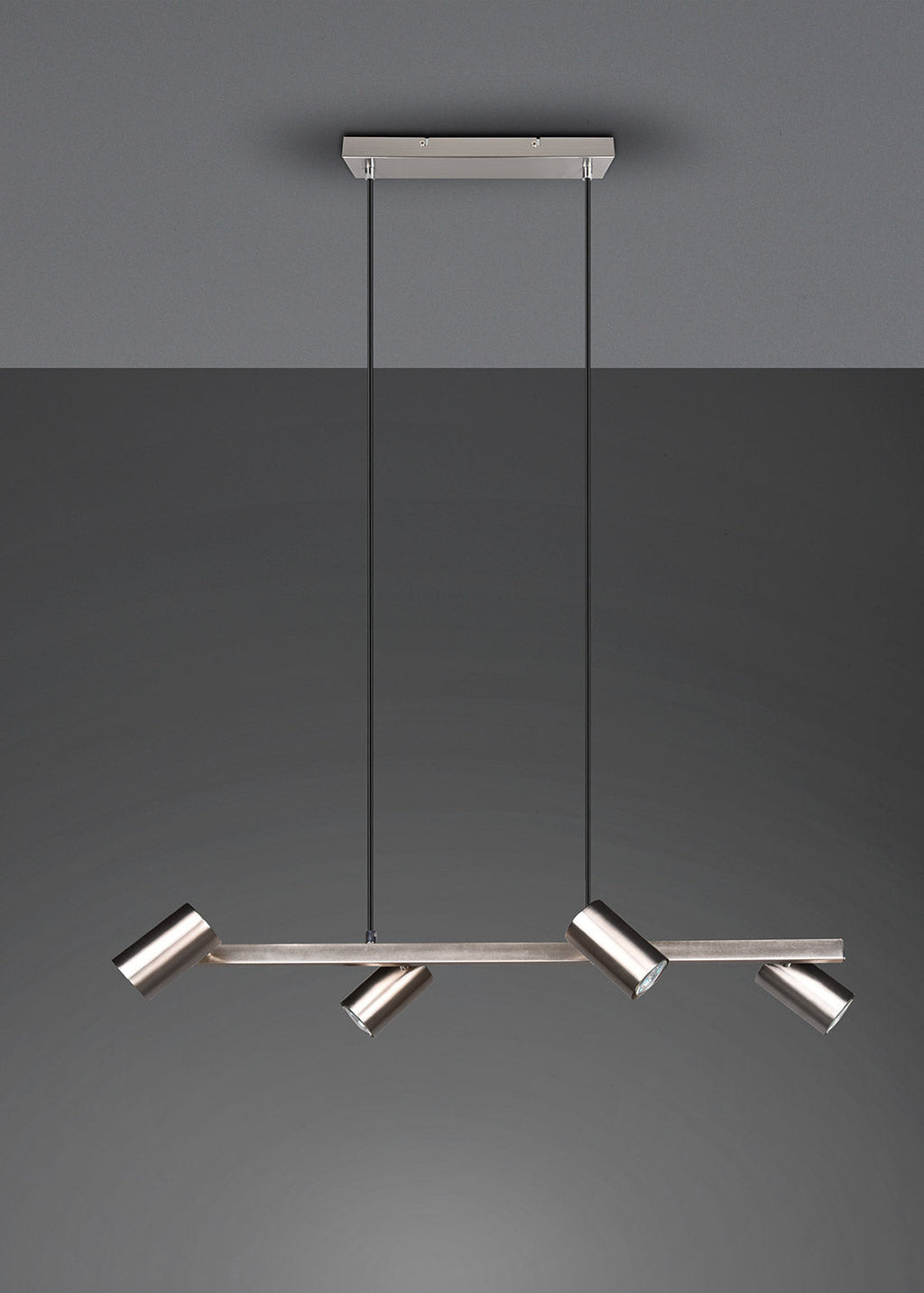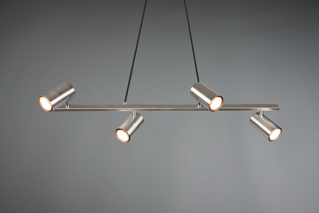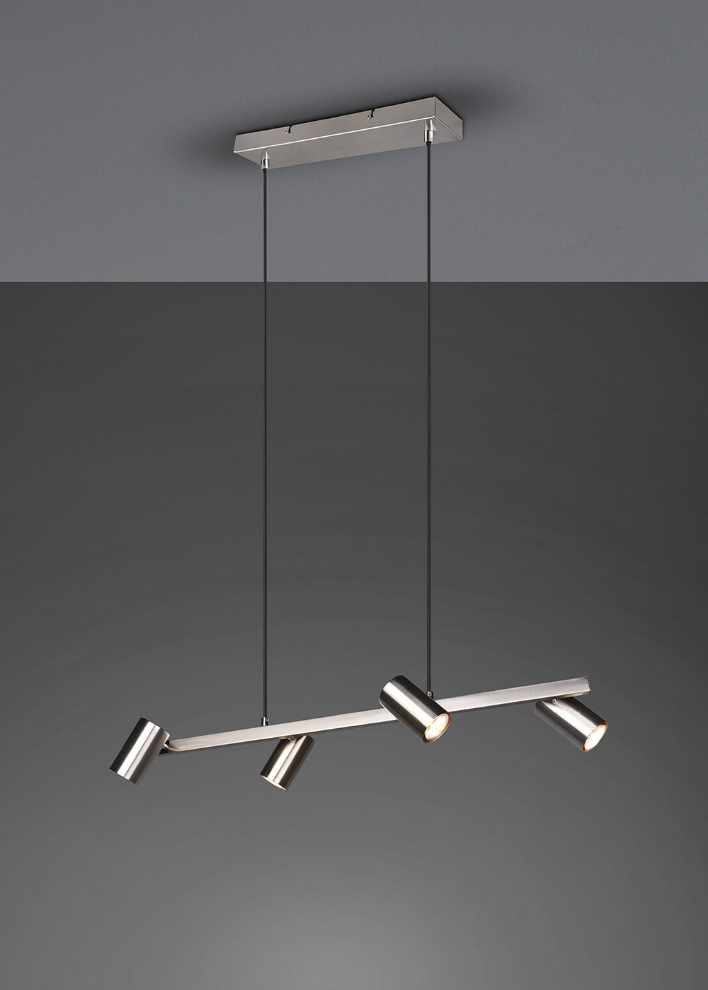 Marley Sospensione Rettangolare Acciaio Satinato con Barra 4 Cilindri L. 80Cm