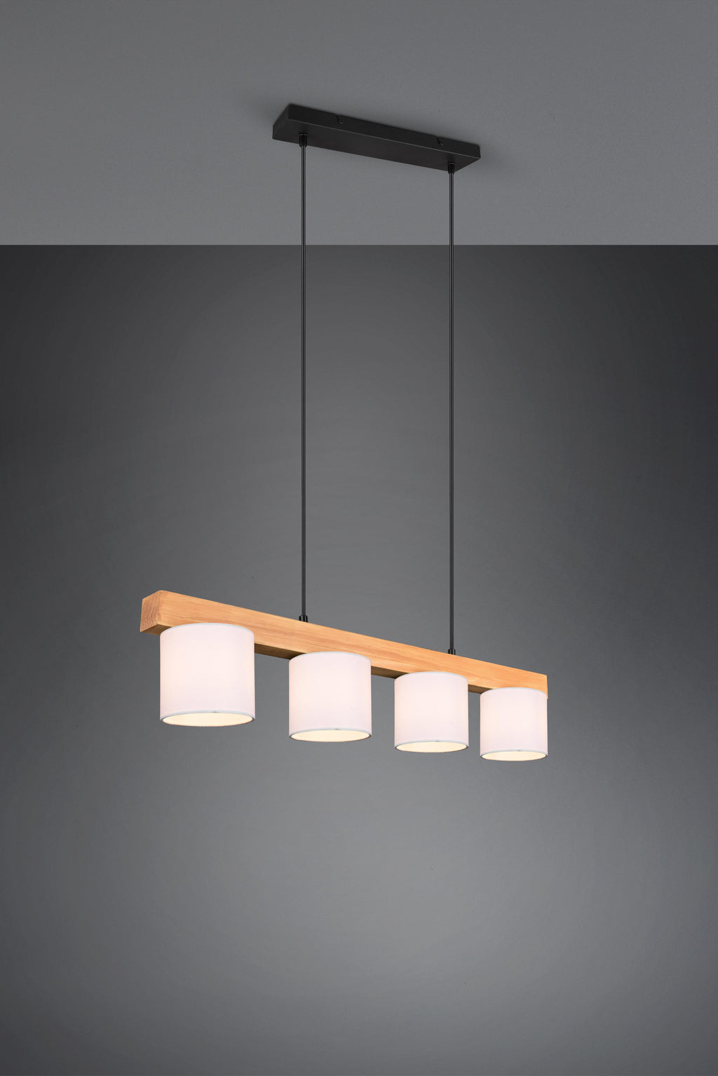 Cameron Suspension Barre Bois Naturel 4 Abat-jour Blanc L. 75Cm
