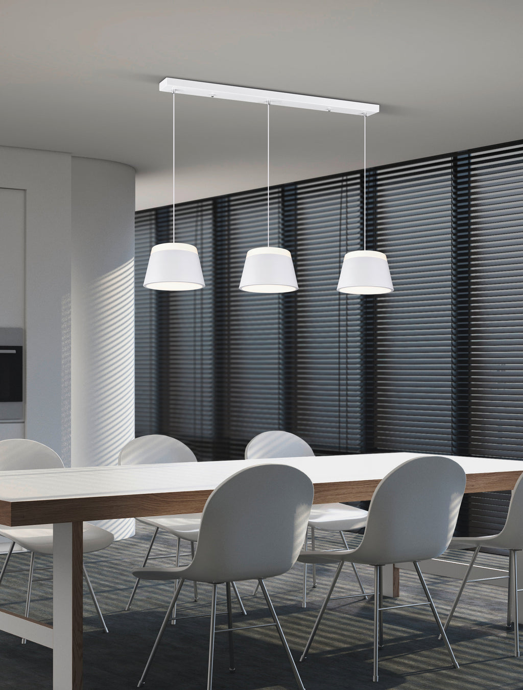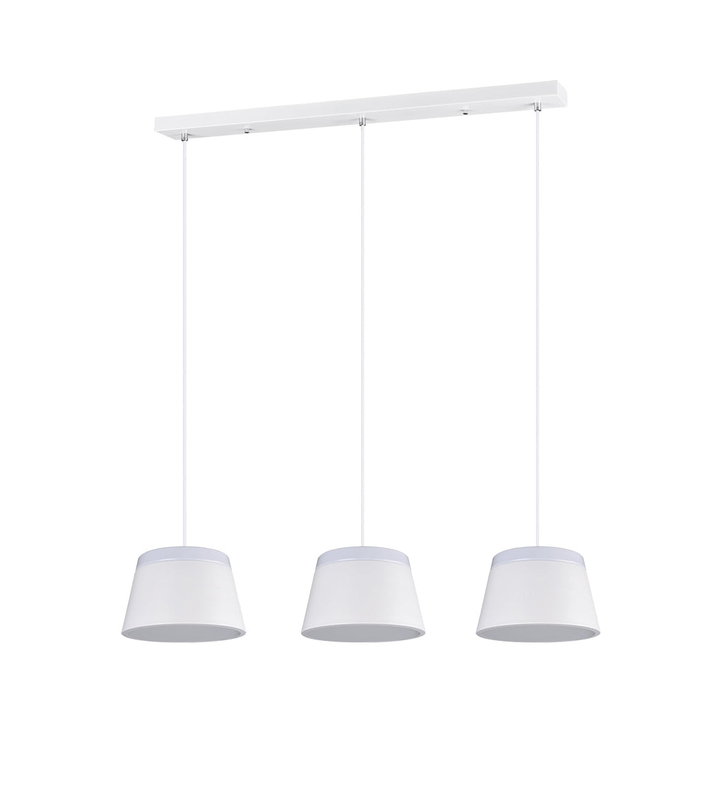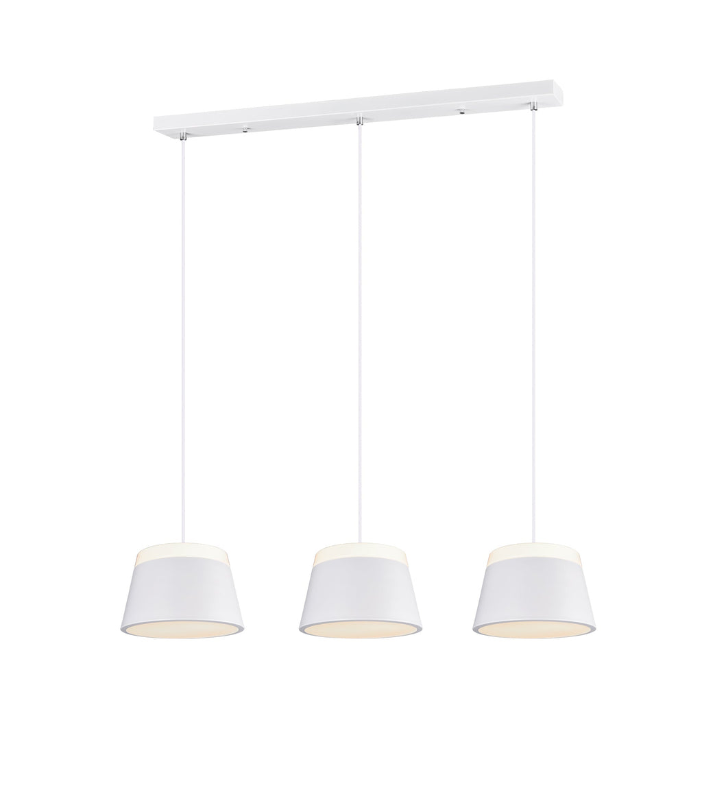 Suspension Baronne 3 Cônes Métal Blanc Avec Diffuseur Double Méthacrylate D. 25Cm L.105Cm