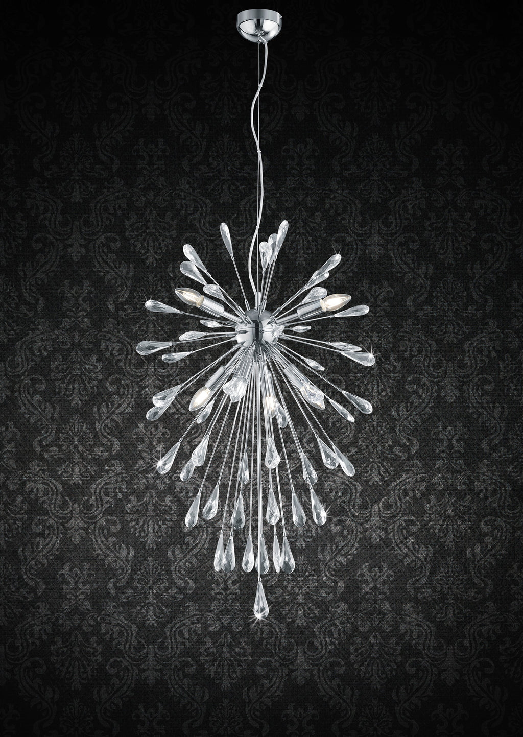 Suspension Minsk Chrome Avec Tiges Et Gouttes Transparentes D.58Cm, H.88Cm