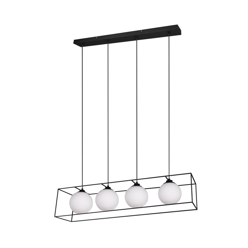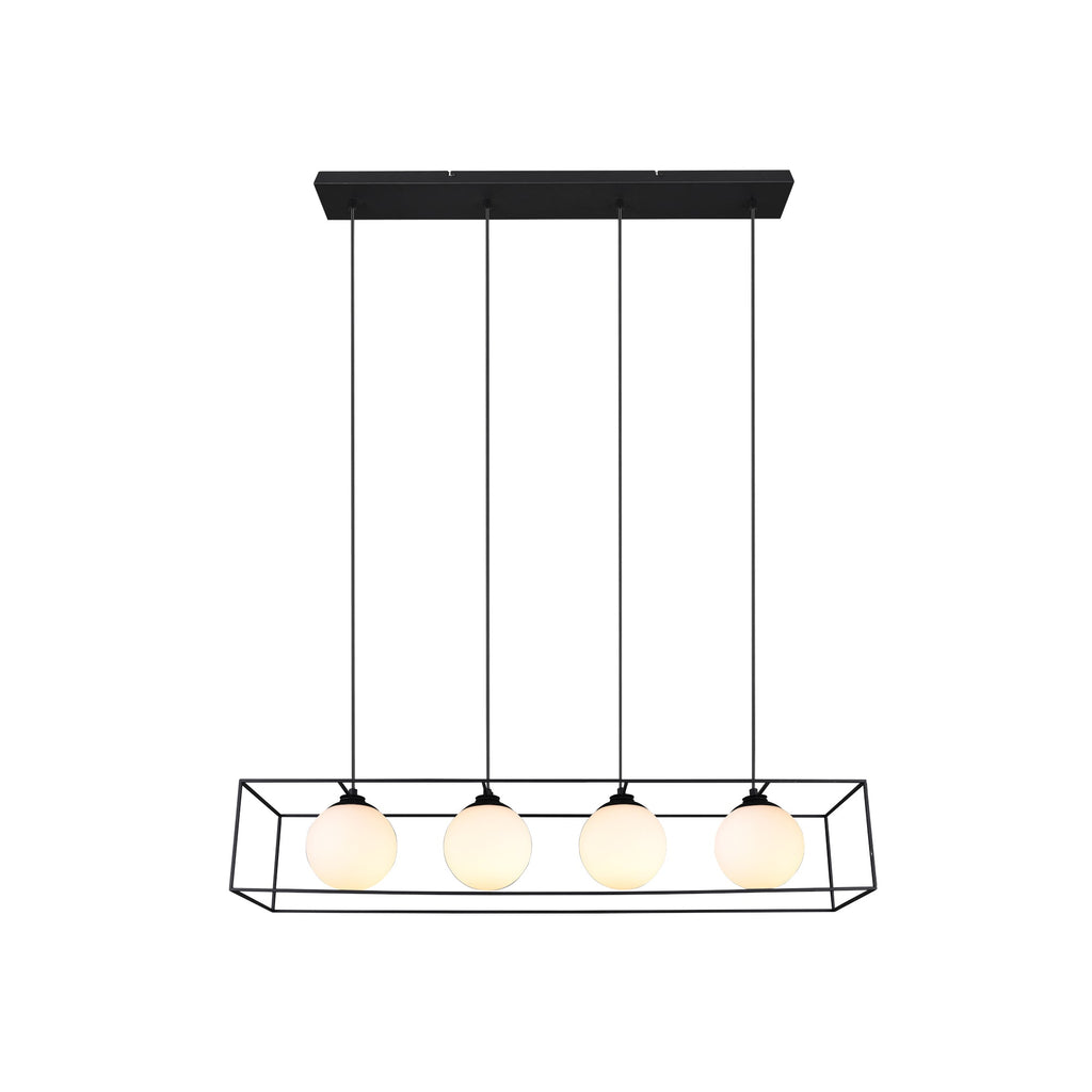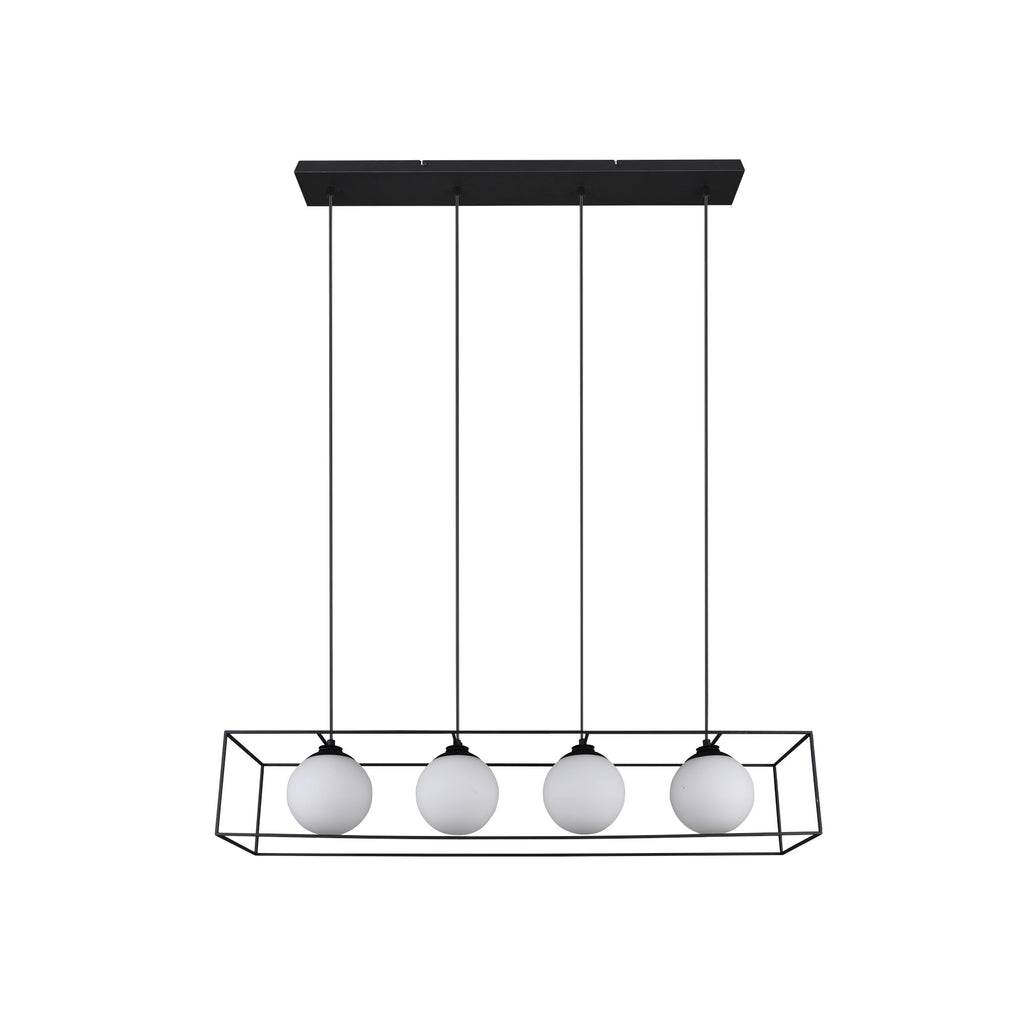 Suspension Cage Métal Noir Avec 4 Verres Sphères Blanches L. 100Cm