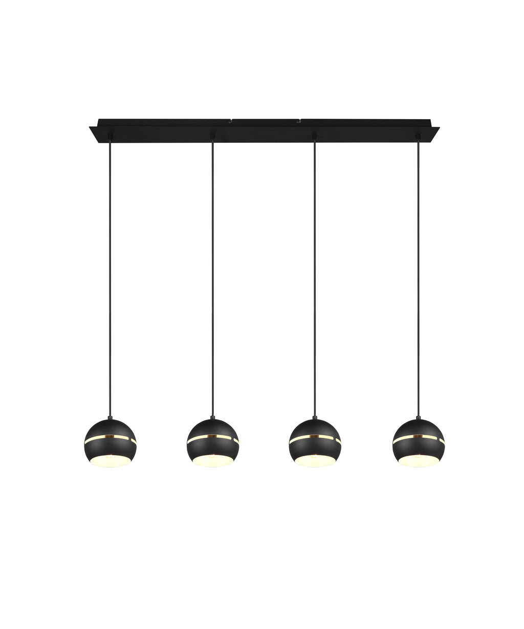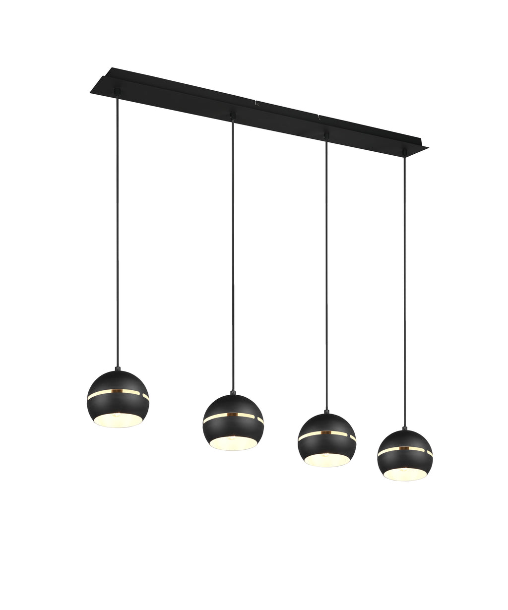 Fletcher Suspension Barre 4 Diffuseurs Sphère Noire L.105Cm