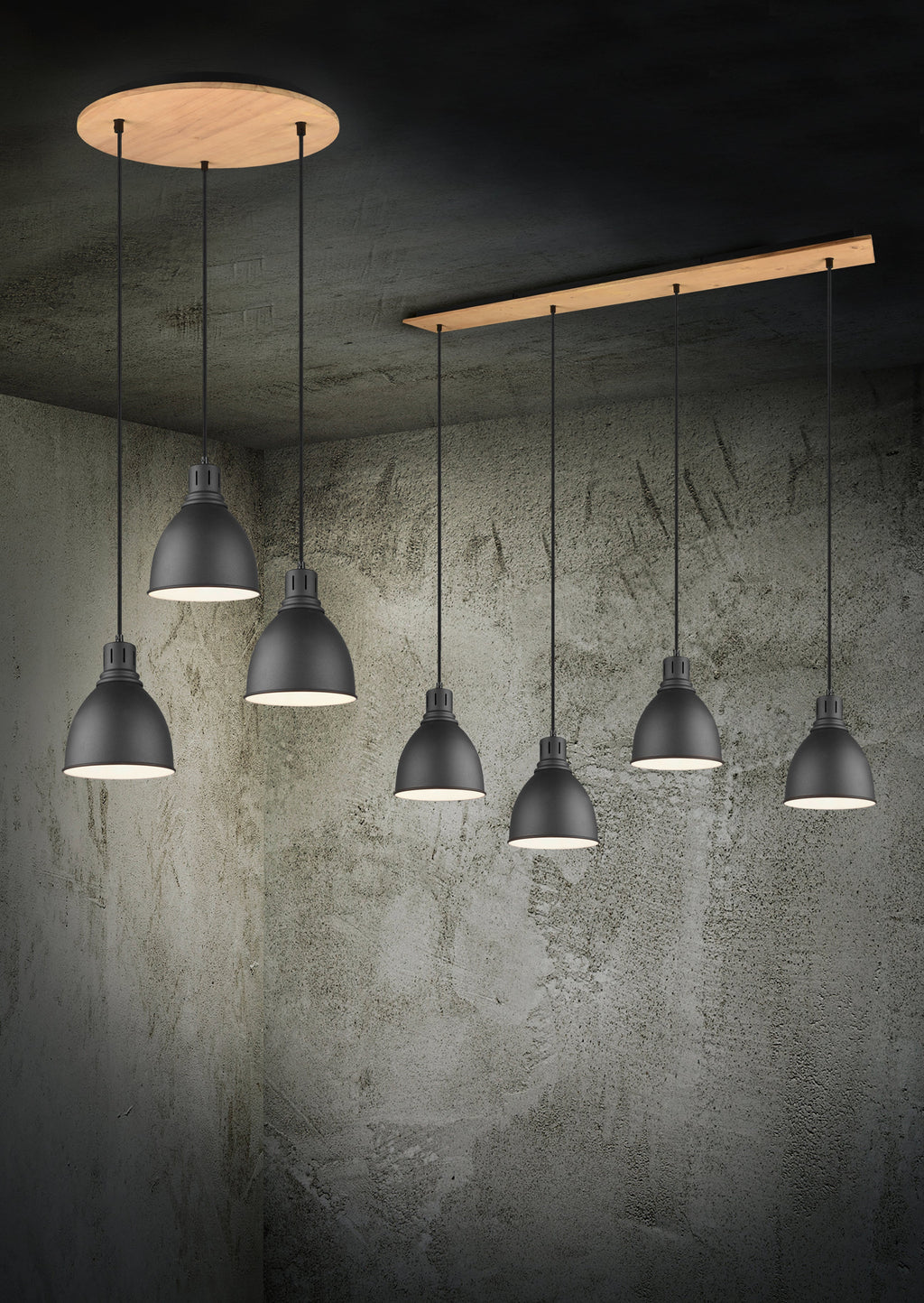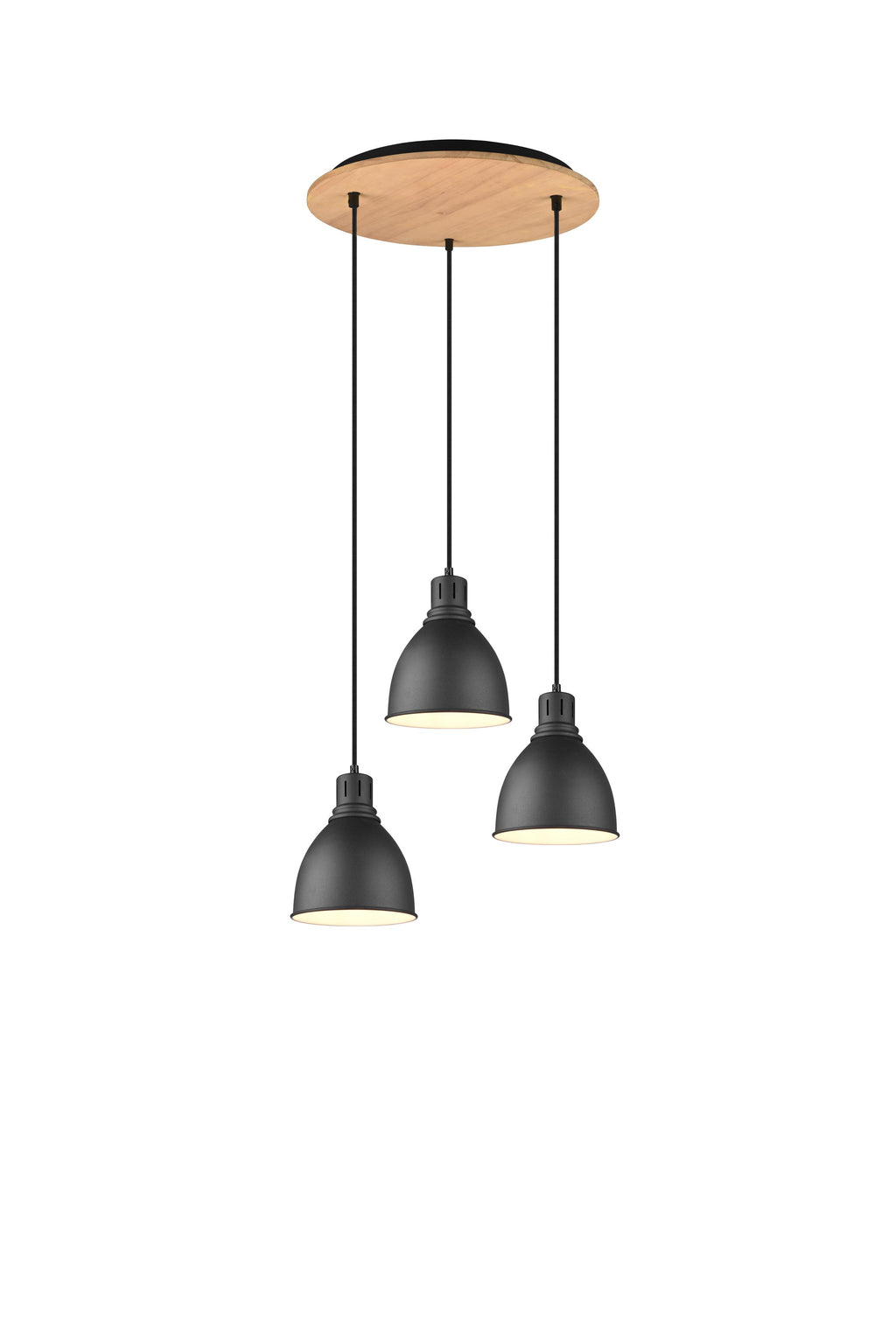 Henley Dropped Suspension 3 Diffuseurs Métal Noir Socle Bois Naturel D. 40Cm