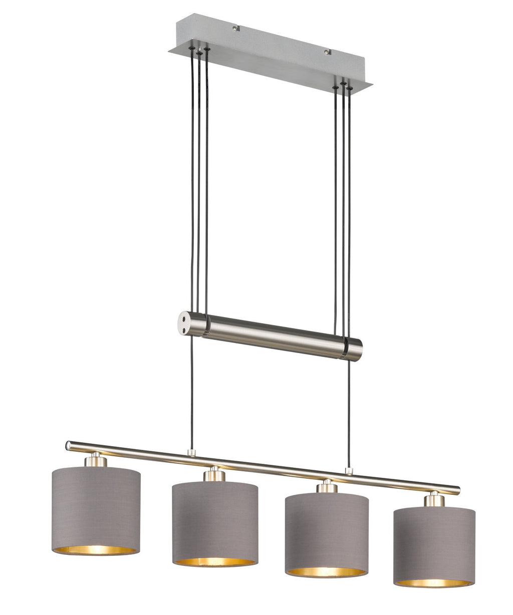 Garda Suspension 4 Diffuseurs Abat-jour Tissu Ecru Intérieur Monture Acier Doré Et Satiné Avec Réglage En Hauteur L. 77Cm