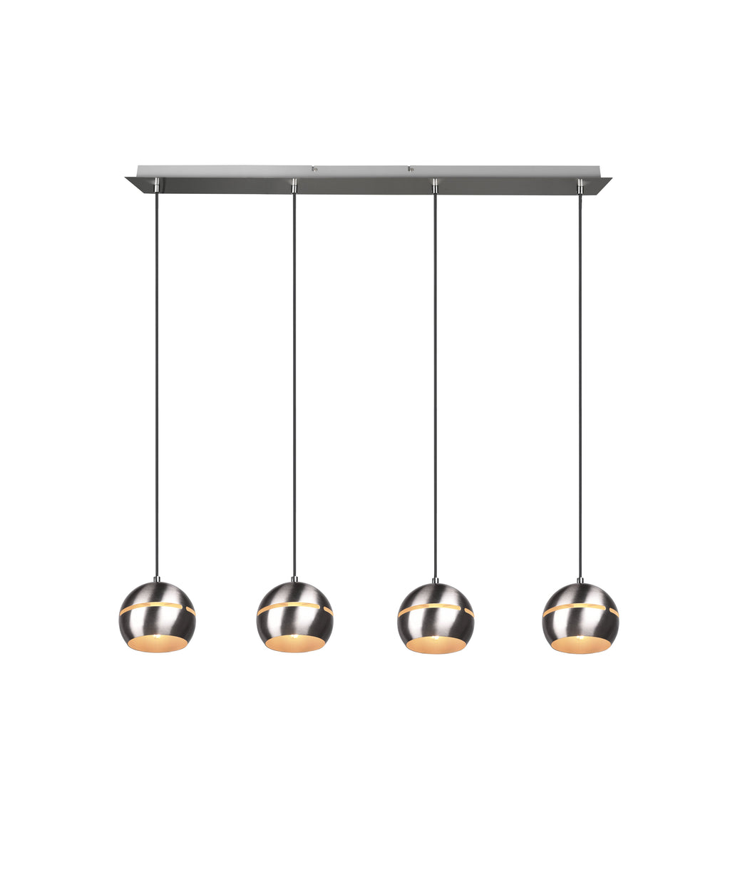 Fletcher Suspension Barre 4 Diffuseurs Sphère Acier Satiné L.105Cm