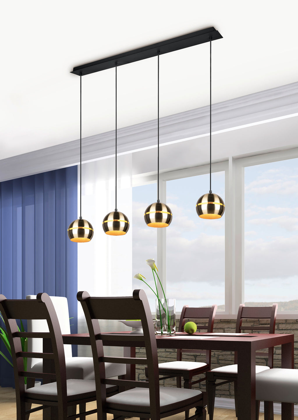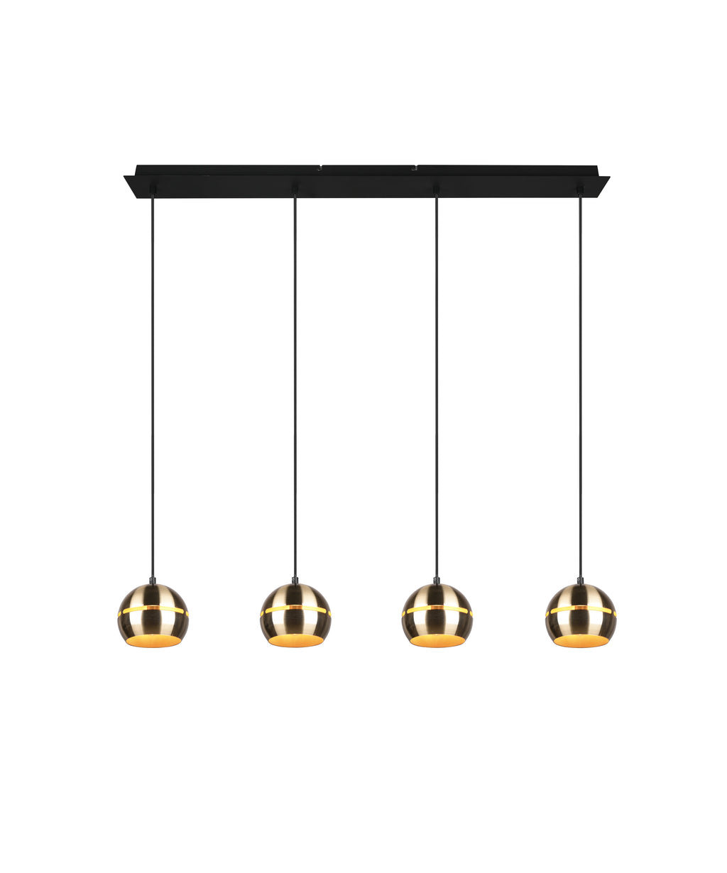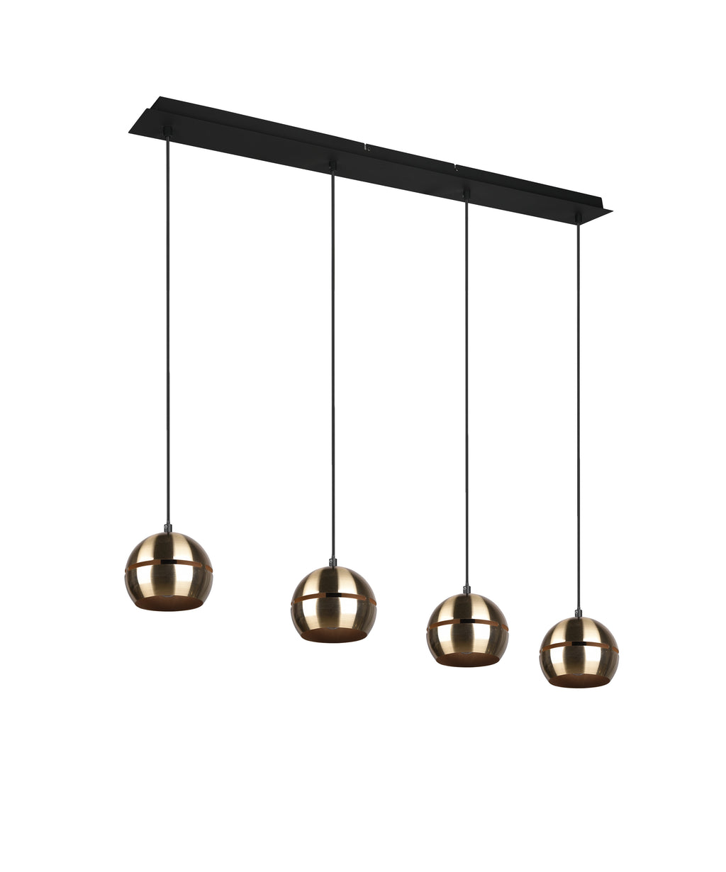 Fletcher Suspension Barre Noire 4 Diffuseurs Sphère Laiton Satiné L.105Cm