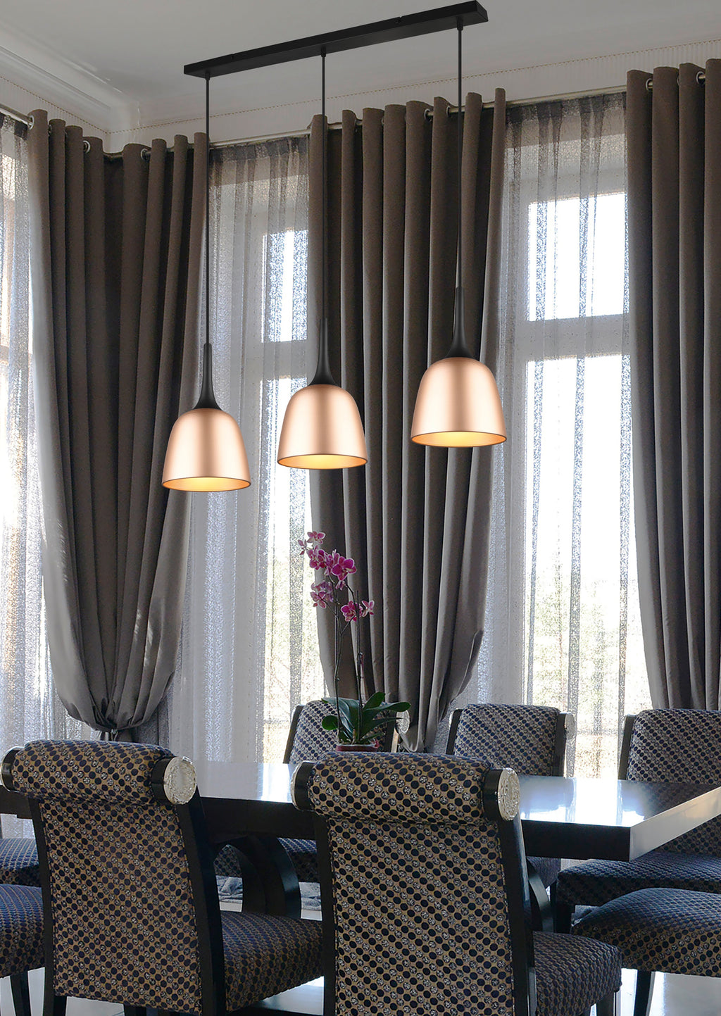 Chiron Suspension Barre Métal Noir 3 Diffuseurs Laiton Satiné L.80Cm