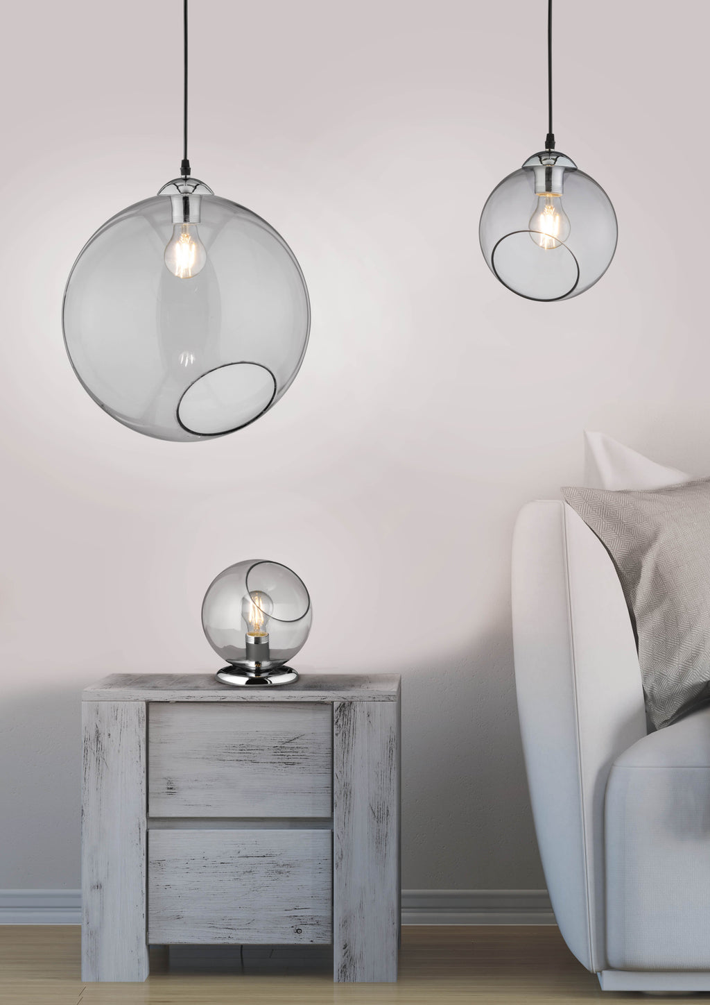 Clooney Suspension Verre Fumé Transparent Avec Cadre Chromé D. 20Cm