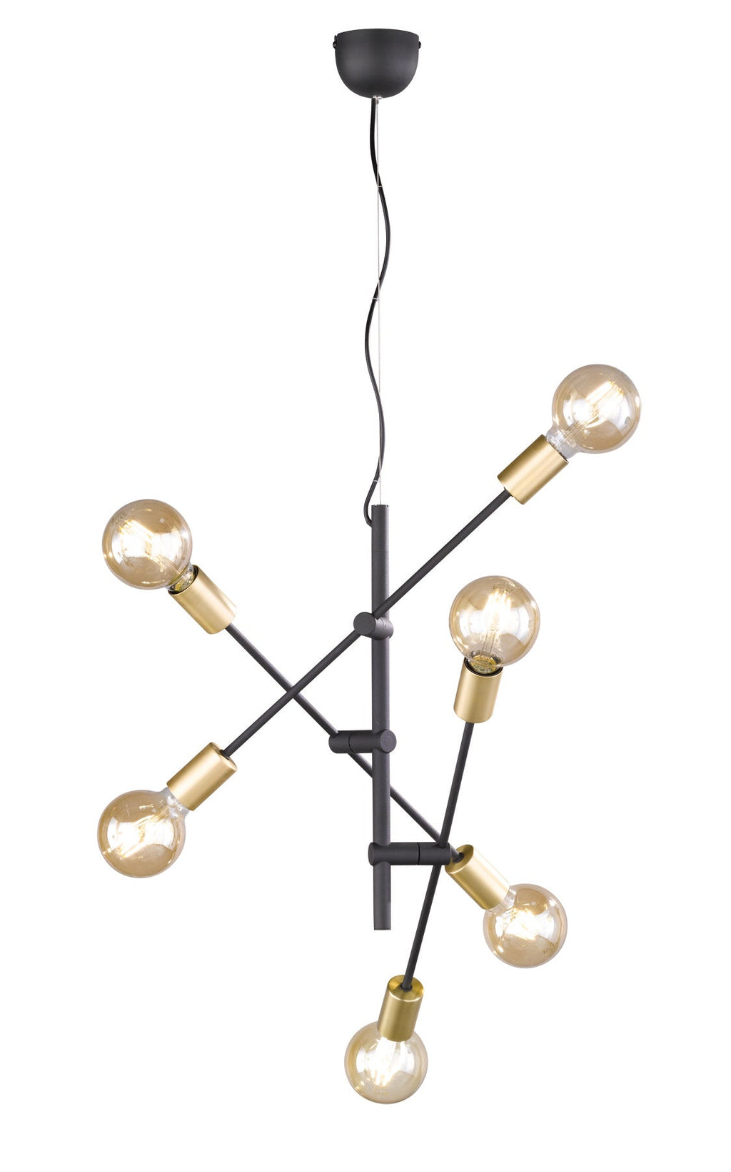 Suspension Croisée 3 Bras Réglables 6 Lumières Noir Mat Et Doré D. 54.5Cm