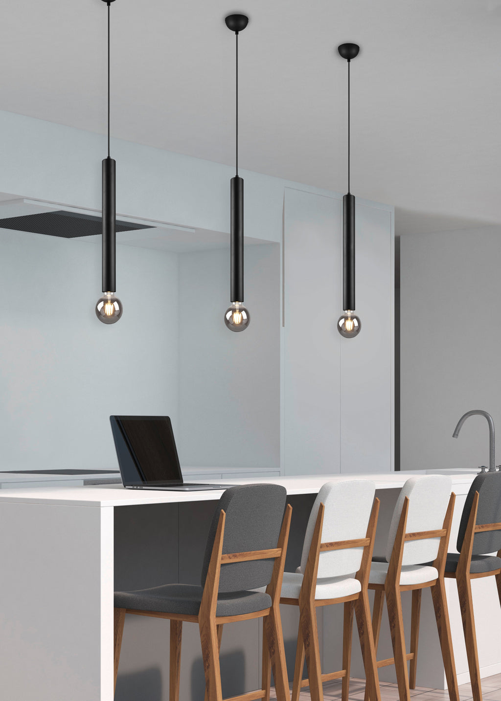 Suspension Clermont Cylindre Noir H. 50Cm D. 10Cm