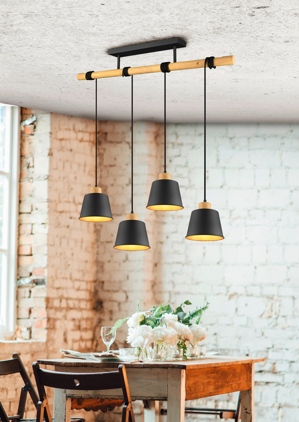 Harris Suspension 4 Diffuseurs Métal Noir Intérieur Doré Avec Structure Et Détails En Bois Naturel L. 85Cm
