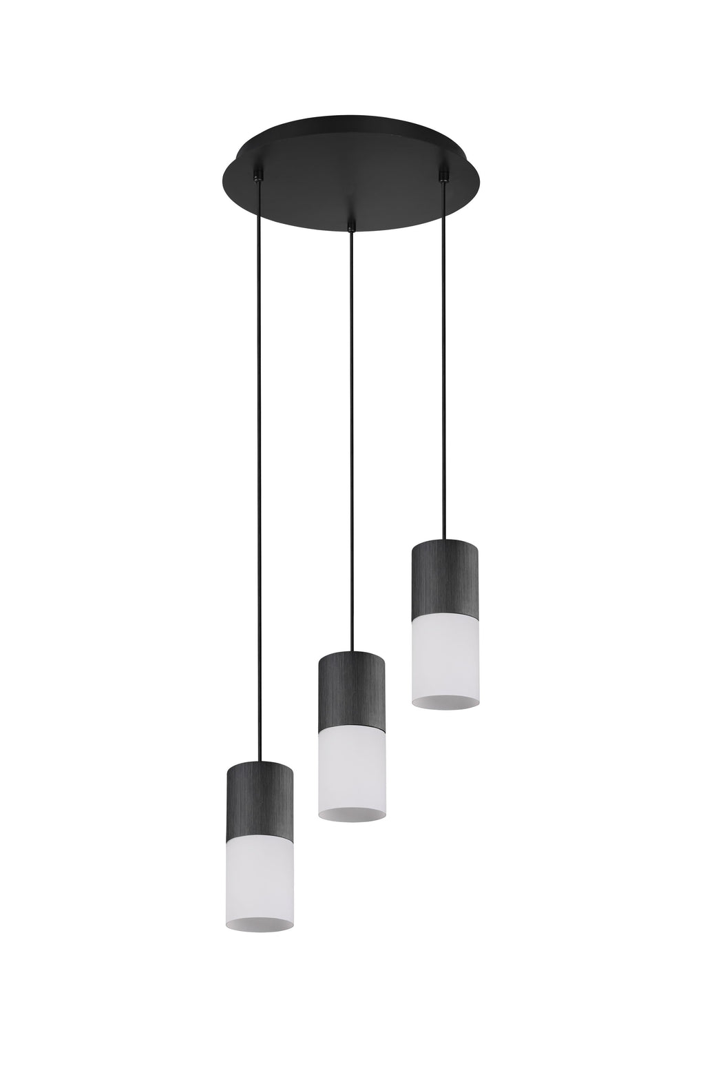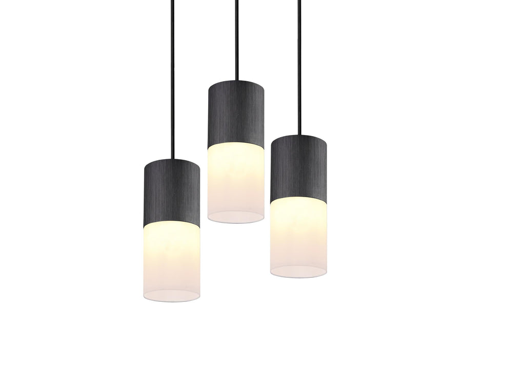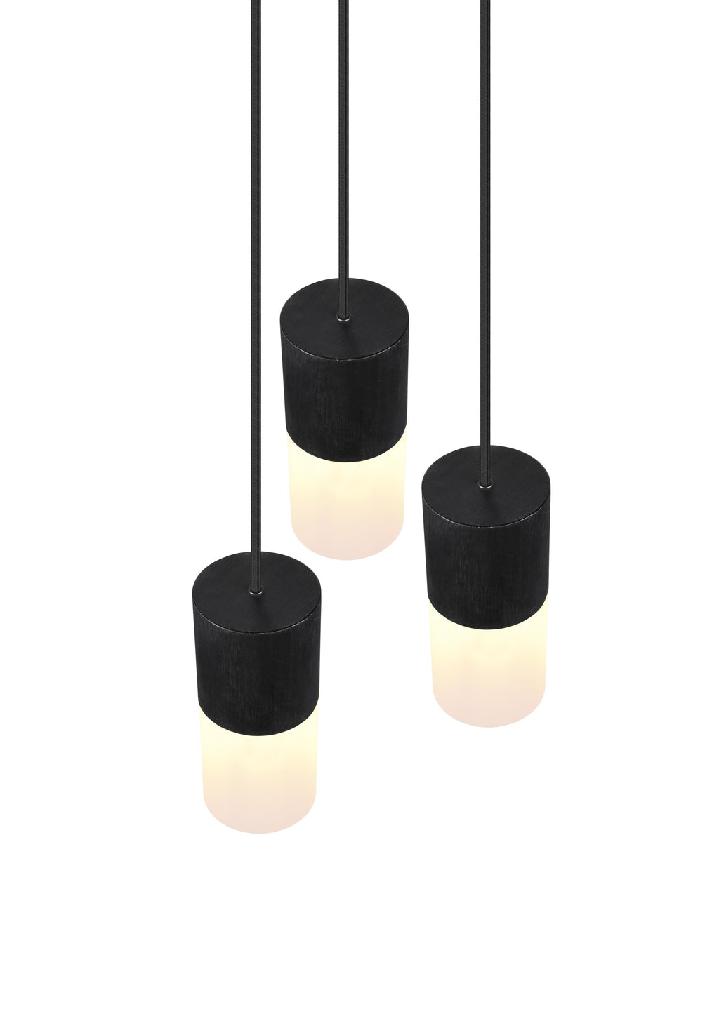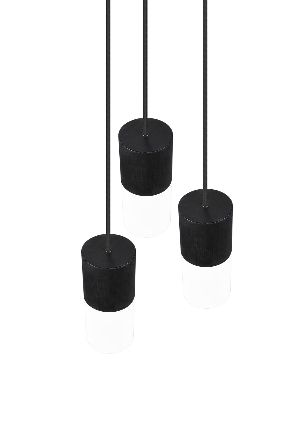 Robin Suspension Lâchée 3 Cylindres Métal Noir Et Verre Blanc Mat D. 37Cm