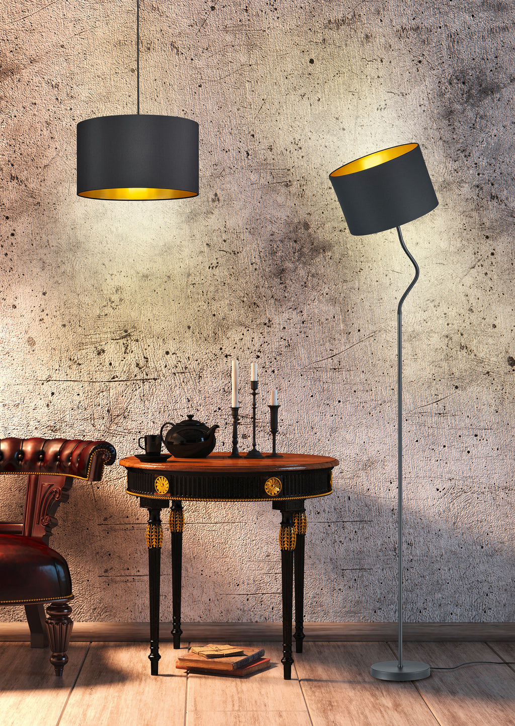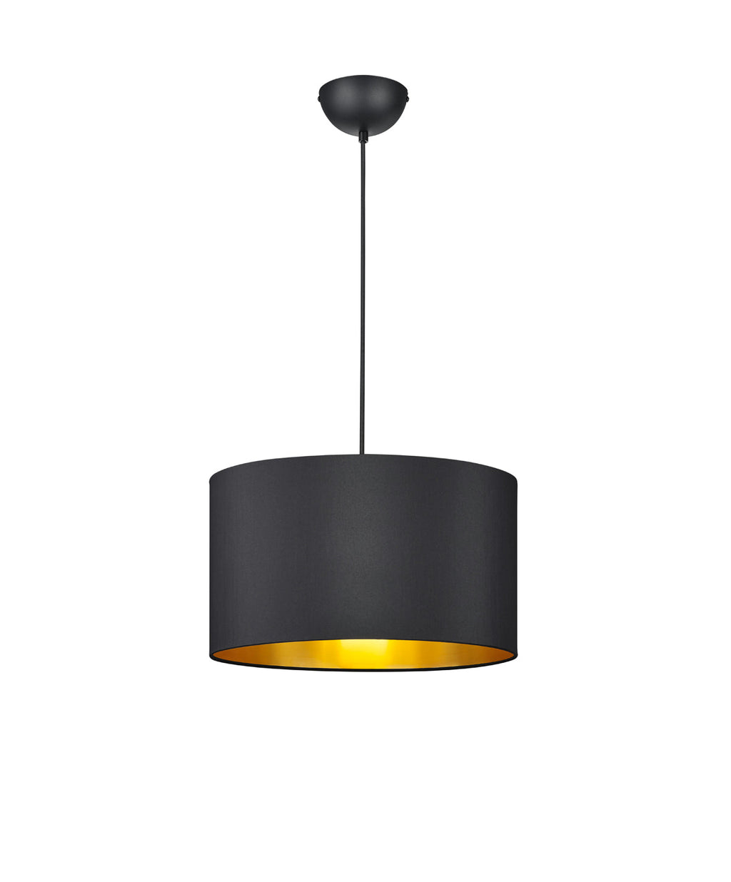 Hostel Suspension Abat-Jour Tissu Noir Intérieur Doré D.40Cm