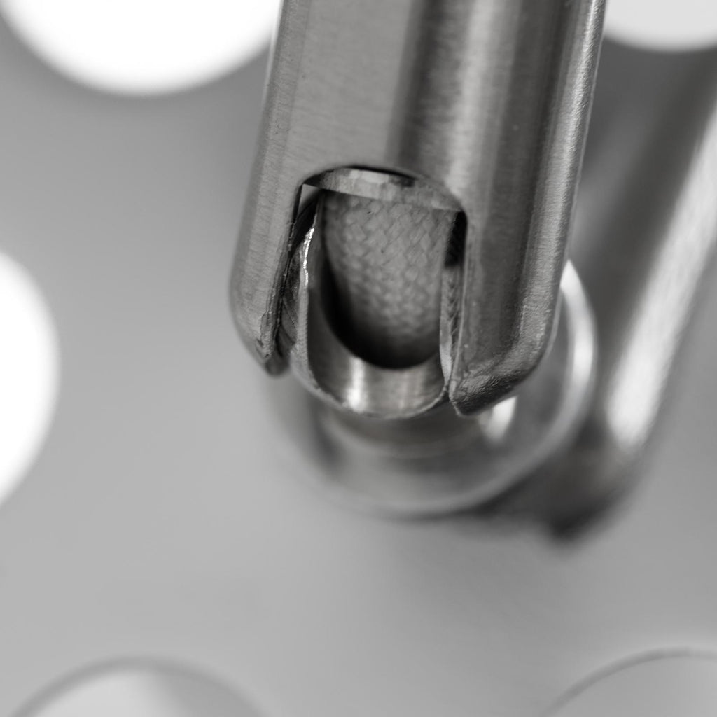 La tige arquée est composée de trois secteurs en profilé d'aluminium capables de permettre, en glissant l'un dans l'autre, l'avancement télescopique et le passage caché des fils. Cela donne à l'arc plus de largeurs, le réflecteur étant positionné à trois hauteurs différentes.