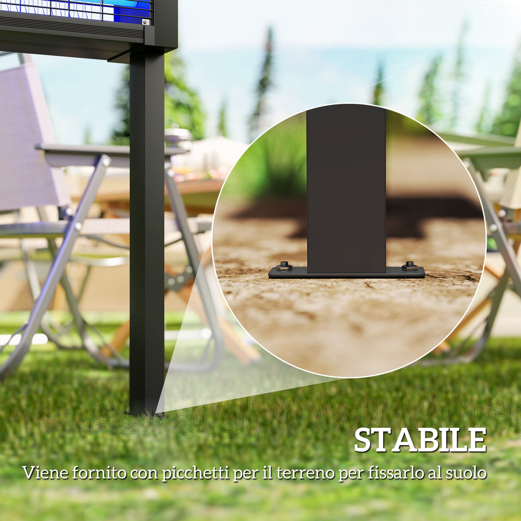 • STABILITÀ: Fissa il dispositivo con la luce antizanzare nel terreno con quattro picchetti per garantire stabilità nel tuo giardino, assicurando notti serene senza la presenza di insetti molesti.