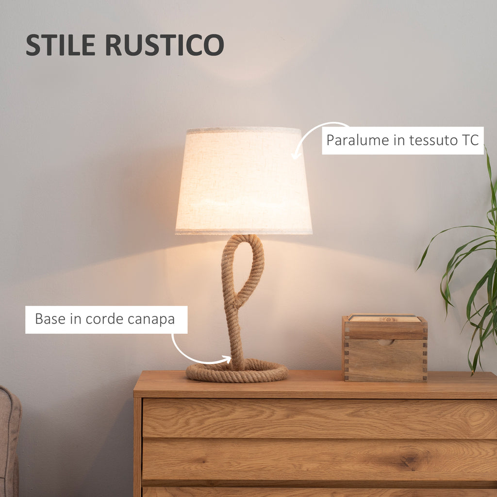 Lampe de Chevet Abat jour Ø30x56 cm en Corde et Tissu Beige et Blanc