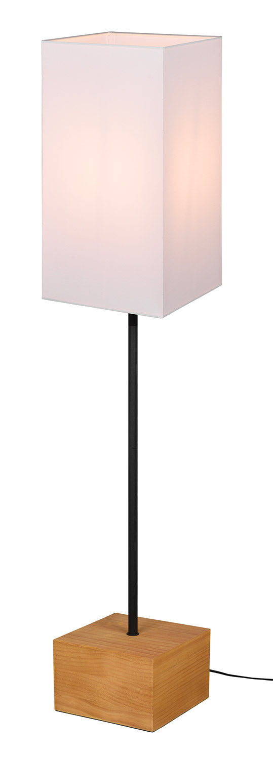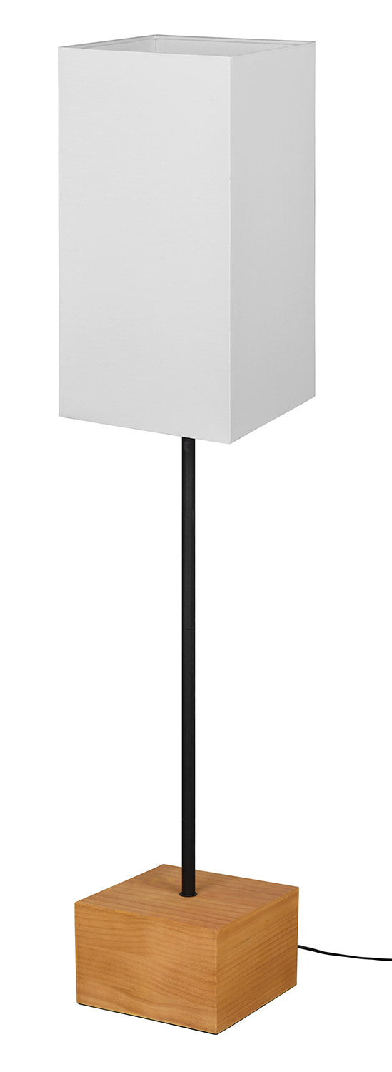 Woody Lampada Da Terra Base Legno Naturale Asta Metallo Nero e Paralume Bianco H. 130Cm
