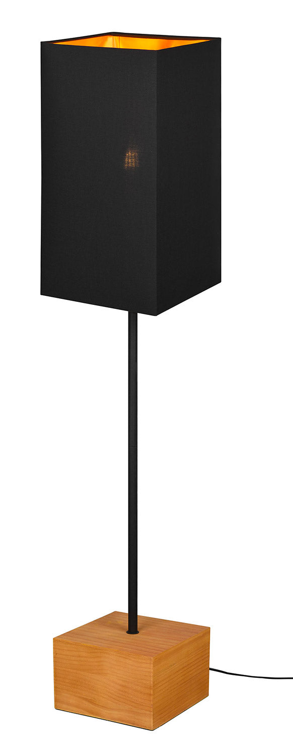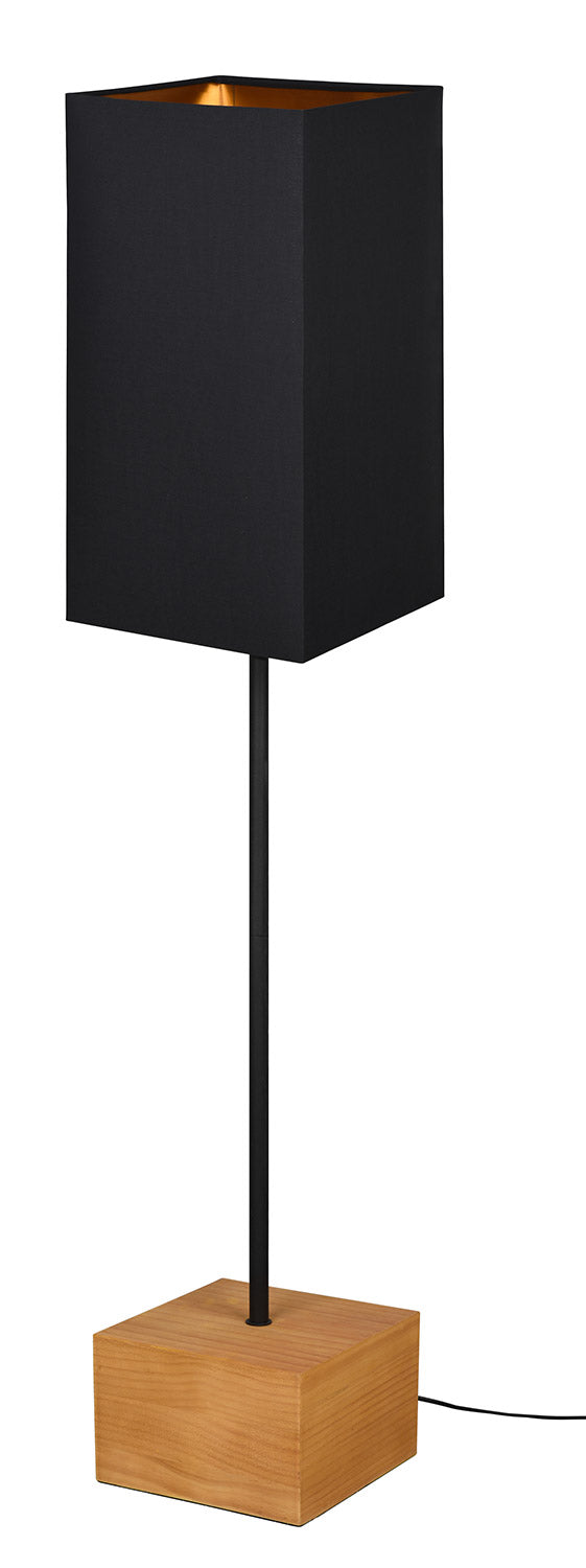 Woody Lampada Da Terra Base Legno Naturale Asta Metallo Nero e Paralume Nero H. 130Cm