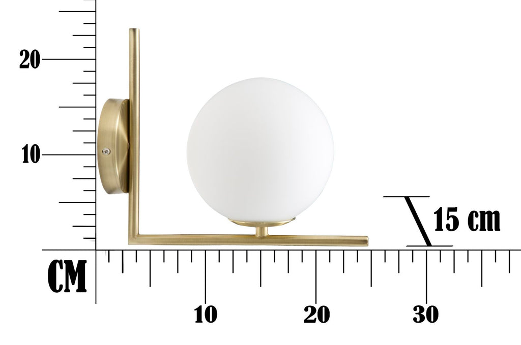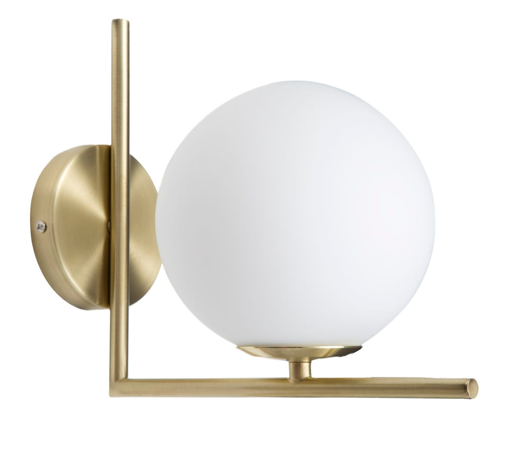 Applique murale en métal doré avec sphère en verre opaque. Des lignes essentielles et épurées caractérisent son élégance. Lampadaires, lampes à poser, appliques et lustres ! Avec ses sphères et ses finitions dorées, la ligne Glamy donne une lumière douce et assurément glam à vos pièces !