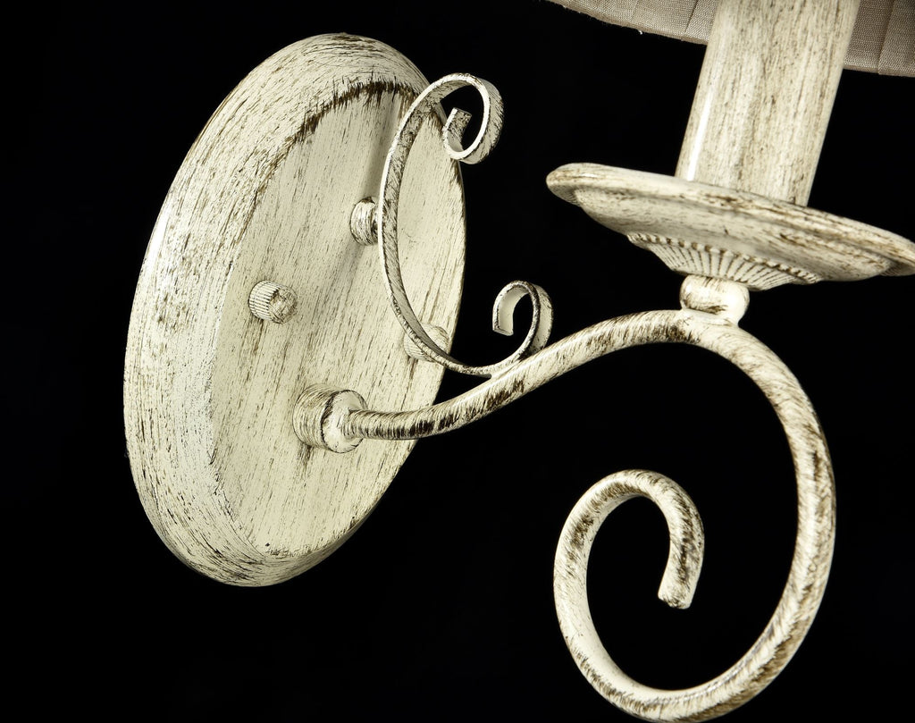 Structure en métal avec finition de couleur crème. Abat-jour recouverts de lin avec finitions décoratives.