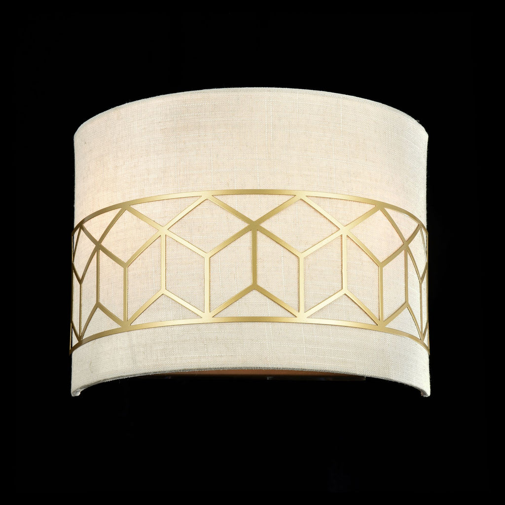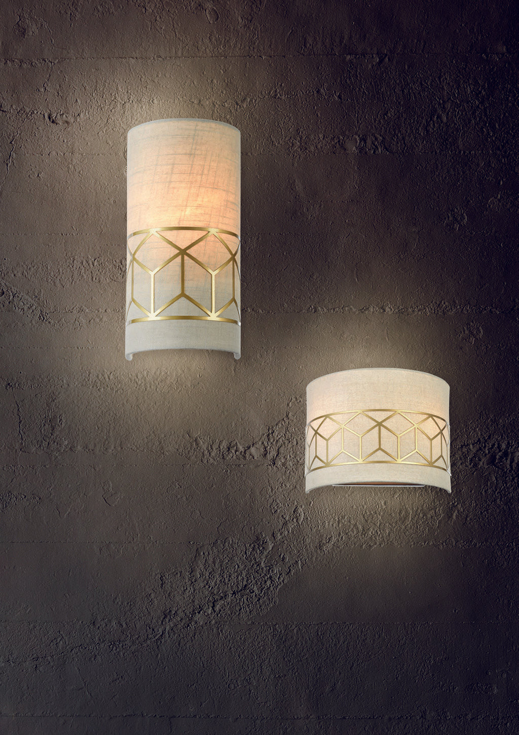 Structure en métal avec décoration au pochoir. Abat-jour recouvert de lin.