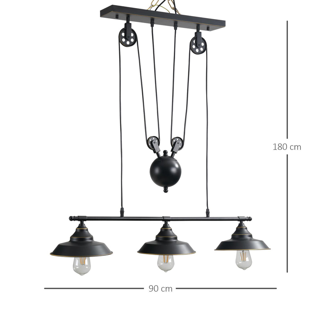 Plafonnier 3 Abat-jours E27 en Métal 90x22x180 cm Noir