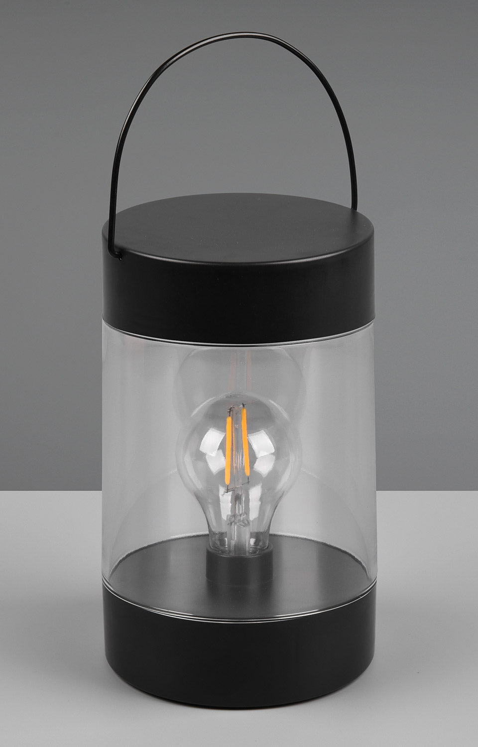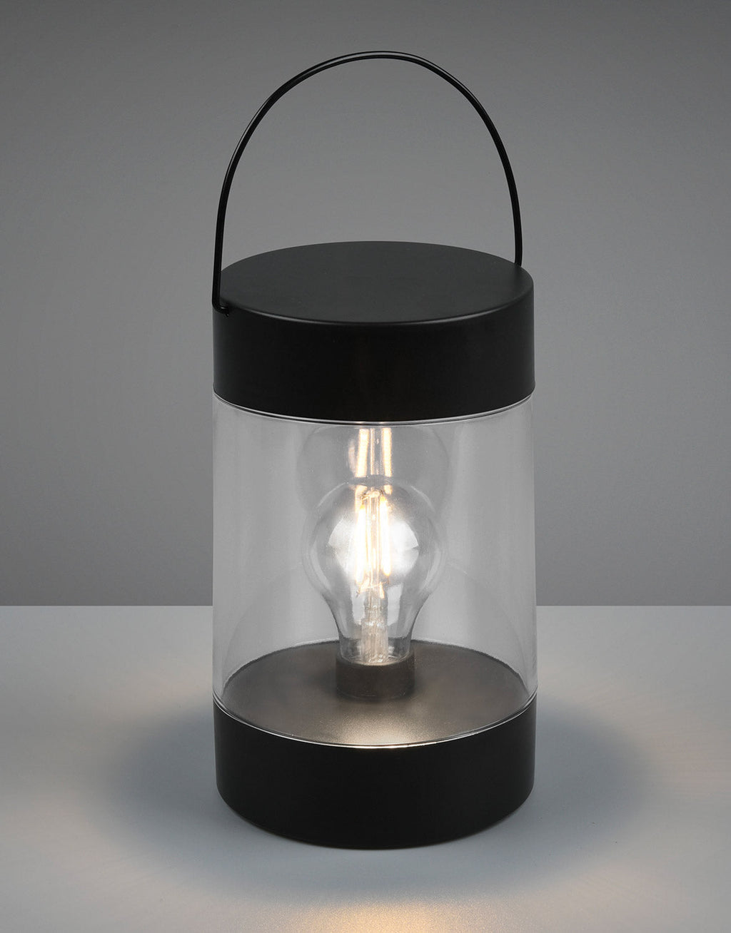 Camargo Lampada Da Appoggio Led Nera e Trasparente Da Esterno Ip44 A Batterie ( Escluse ) con Timer H. 20Cm