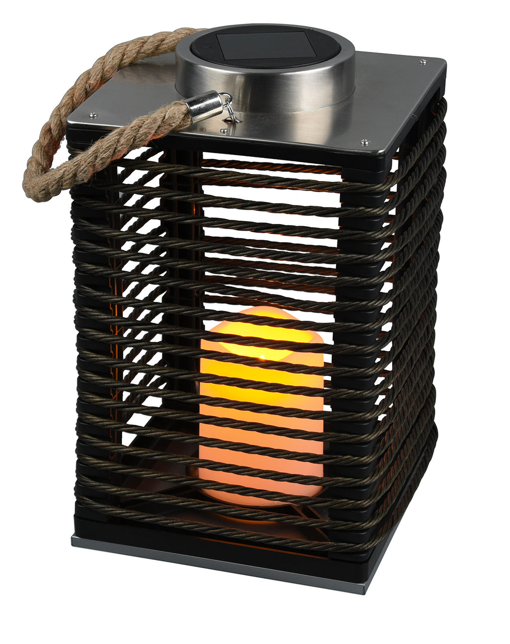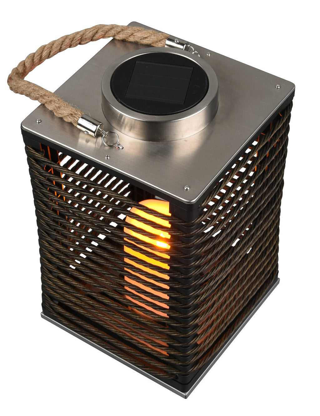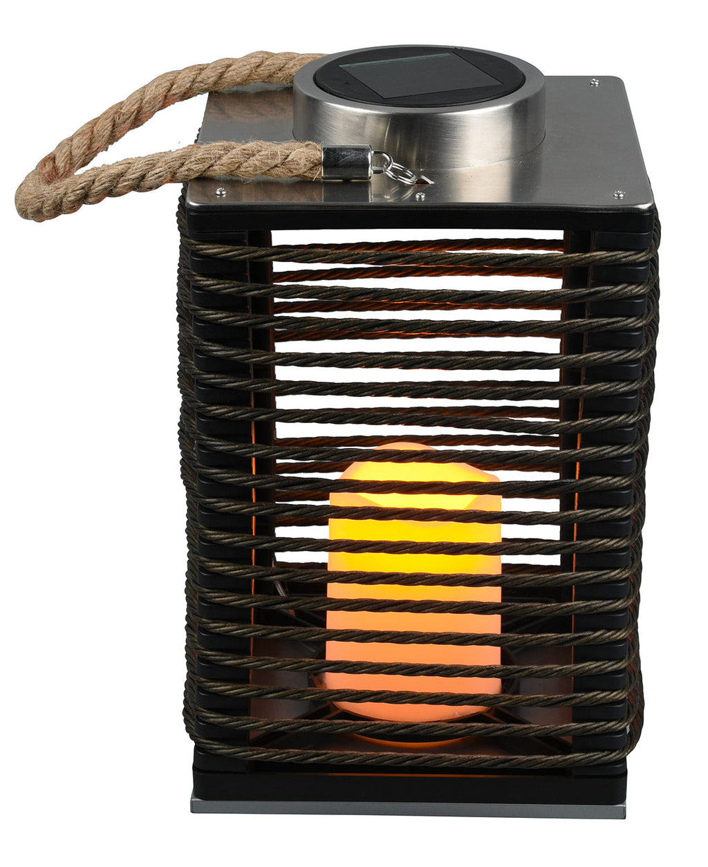 Santana Lampada Da Appoggio Led Nera Da Esterno Ip44 Solare Ricaricabile con Sensore Crepuscolare Effetto Fiamma H. 28Cm