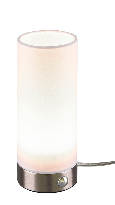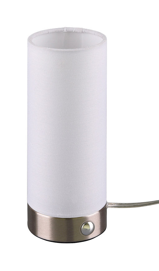 Emir Lampada Da Tavolo Led Cilindro Tessuto Bianco con Accensione Touch H. 20Cm