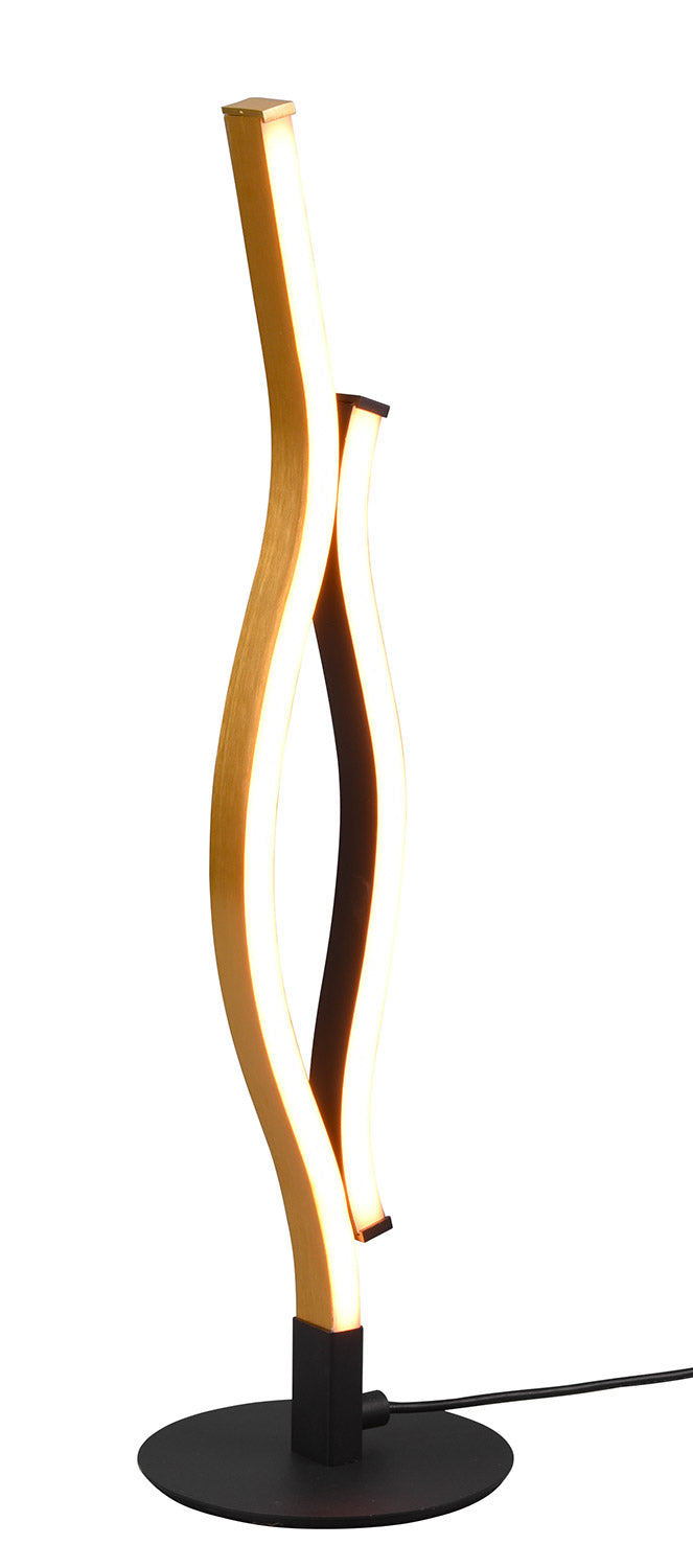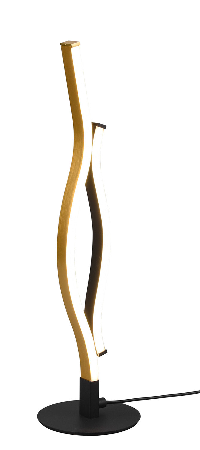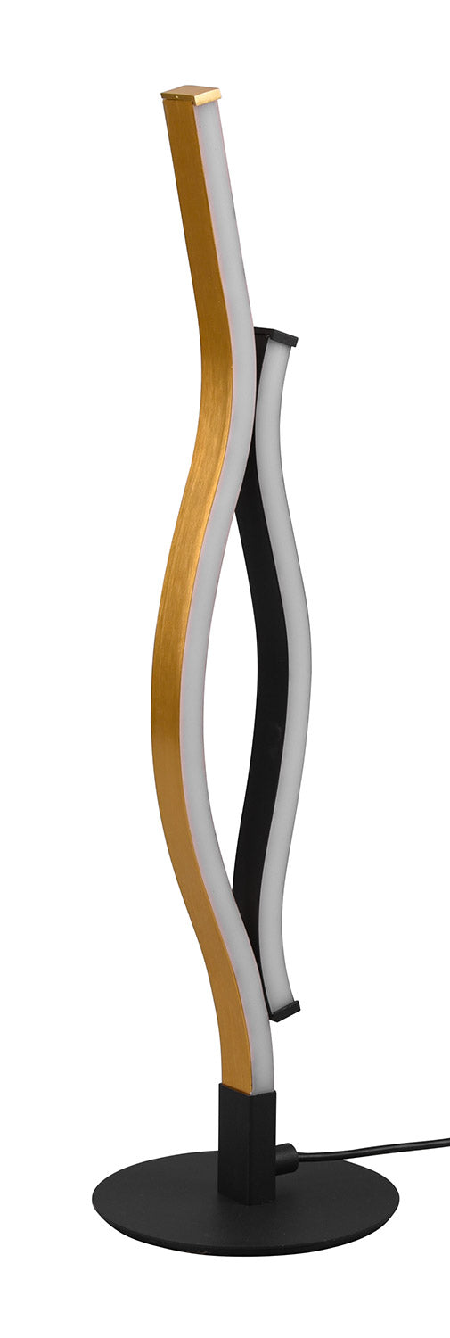 Blaze Lampada Da Tavolo Led Ondulata Metallo Ottone e Nero con Regolazione Intensità e Temperatura di Colore Della Luce con Interruttore Touch H. 48Cm