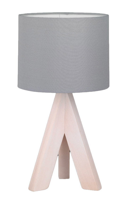 Ging Lampada Da Tavolo Base 3 Piede Legno Naturale con Paral. Grigio H.31Xd.17 Cm