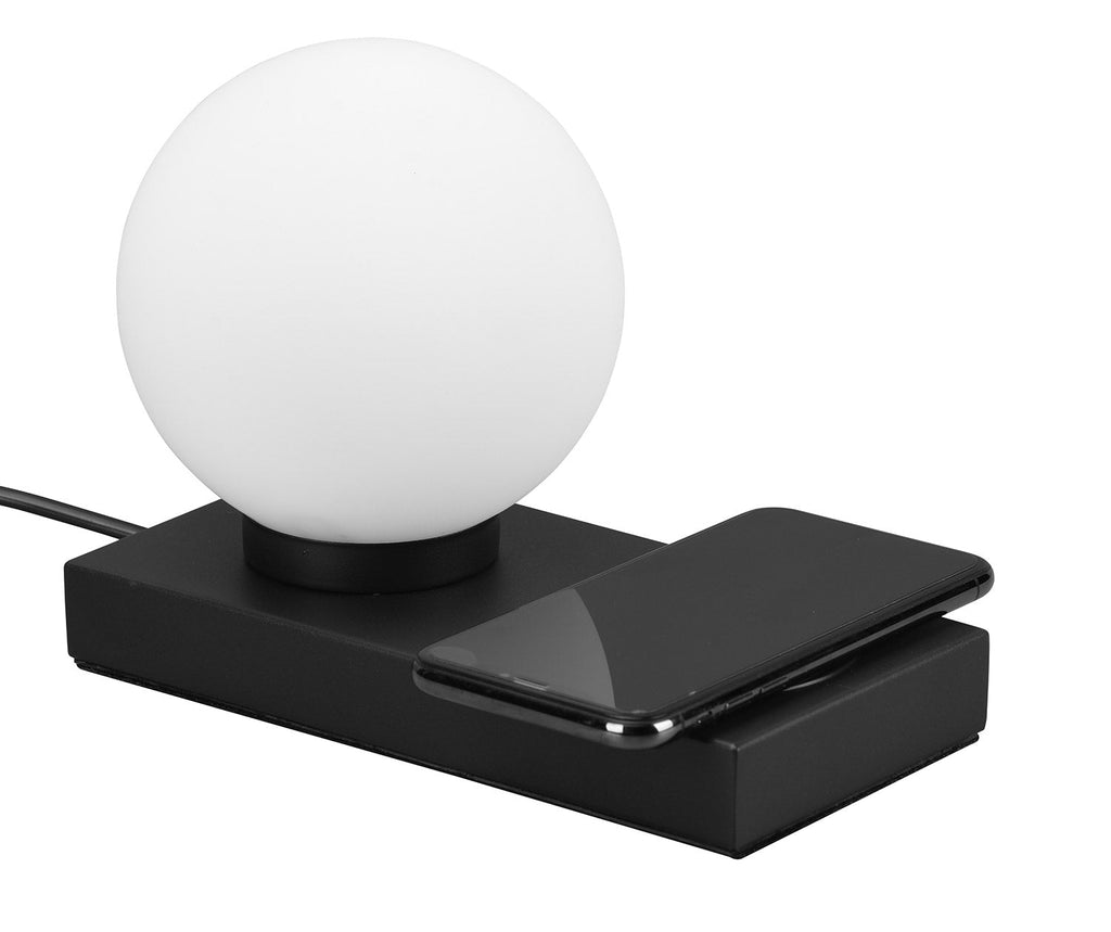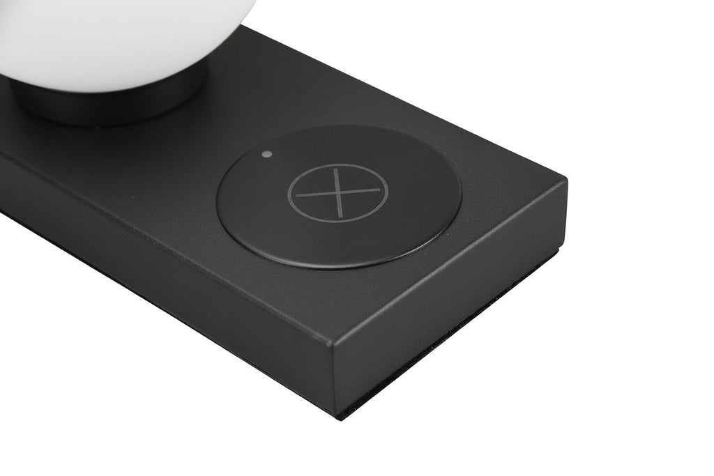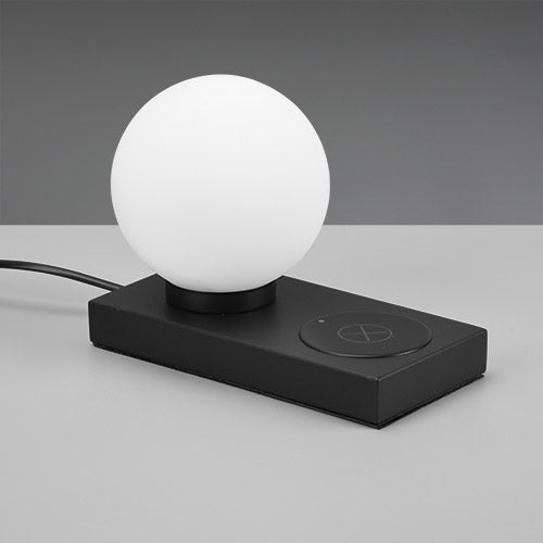 Chloe Lampada Da Tavolo Nera con Sfera Vetro Bianco con Base X Ricarica Induttiva Cellulare con Interruttore Touch H. 15Cm