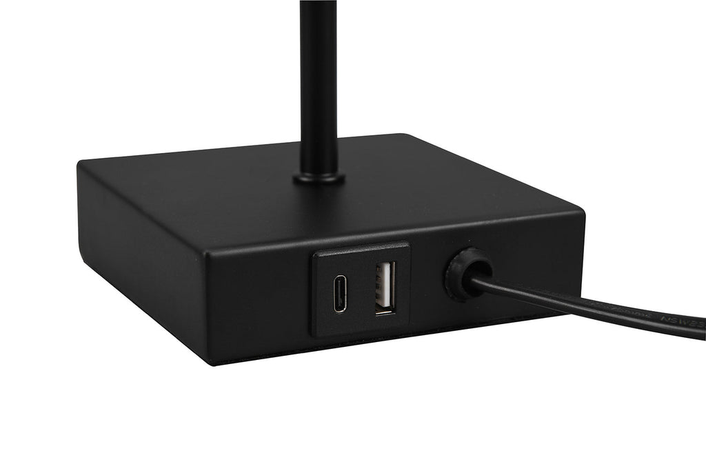 Ole Lampada Da Tavolo Nera con Paralume Nero con Interruttore A Corda con Doppia Porta Usb ( Usb + Usb-C ) Per Ricarica H. 30Cm