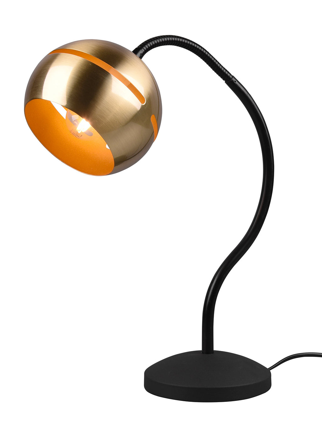 Fletcher Ii Lampada Da Tavolo Nera Flessibile Diffusore Sfera Ottone Satinato H. 43Cm