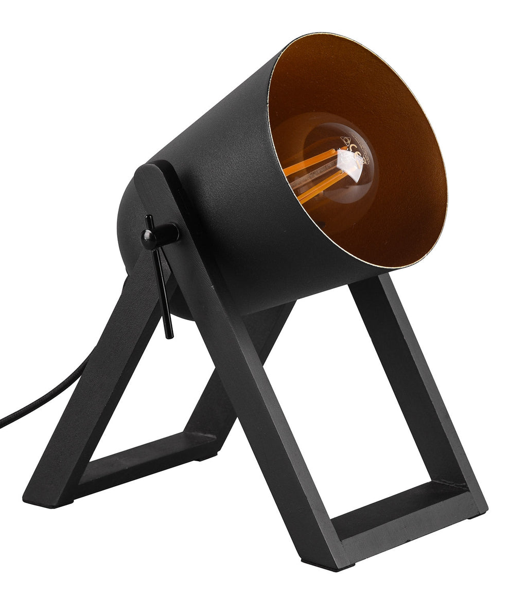 Lampada da Tavolo da Interno Attacco E27 in Legno naturale Nero e Oro