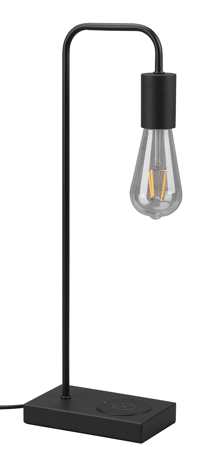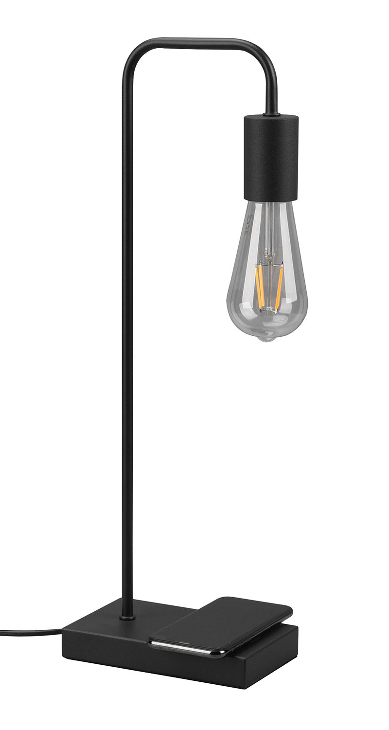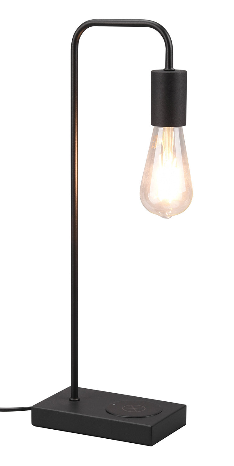 Milla Lampada Da Tavolo Nera con Base X Ricarica Induttiva Cellulare con Interruttore Touch H. 51Cm