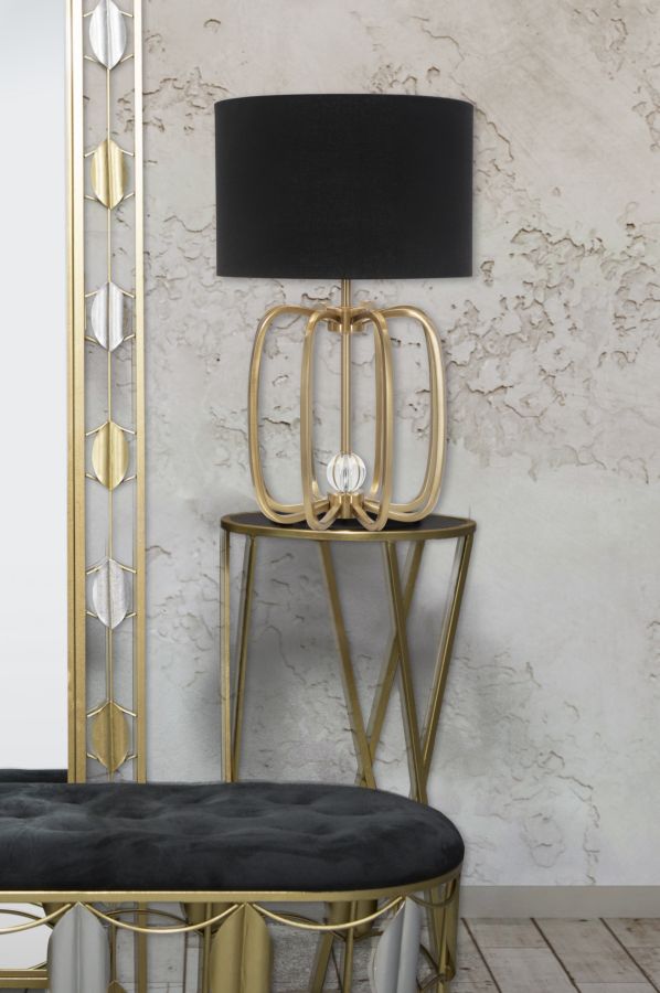 Lampe de table Glam Ball Ø38x62 cm en fer, plastique et polyester, noir et or