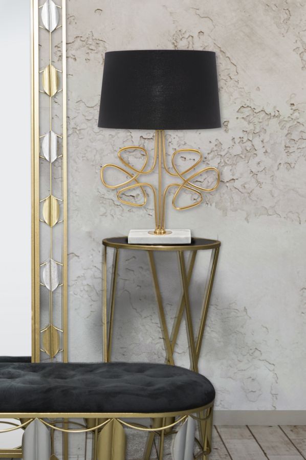 Le style glam allie détails chics et extravagants. Lampes de table qui se distinguent par la combinaison d'or et de couleurs vives ou de couleurs plus foncées comme l'ardoise et le noir.