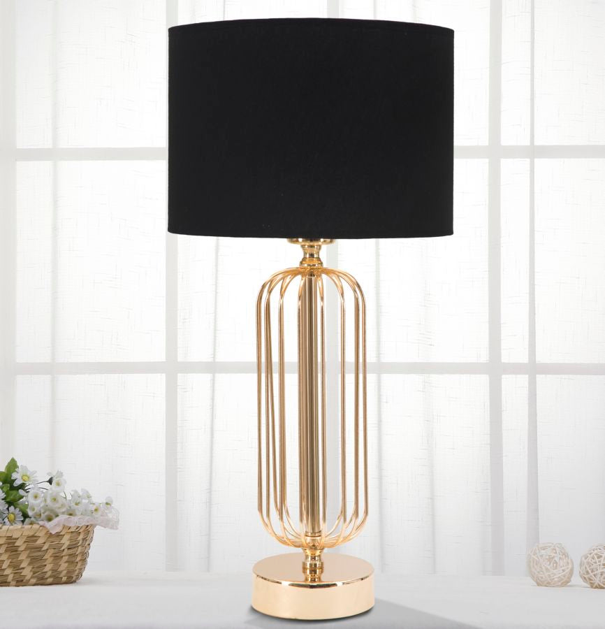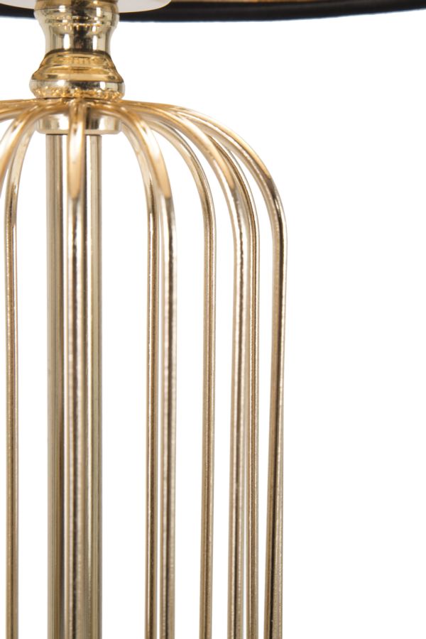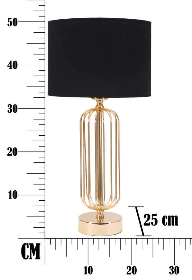 Glam Towy Ø25x51 cm Lampe à Poser en Fer et Tissu Noir et Doré