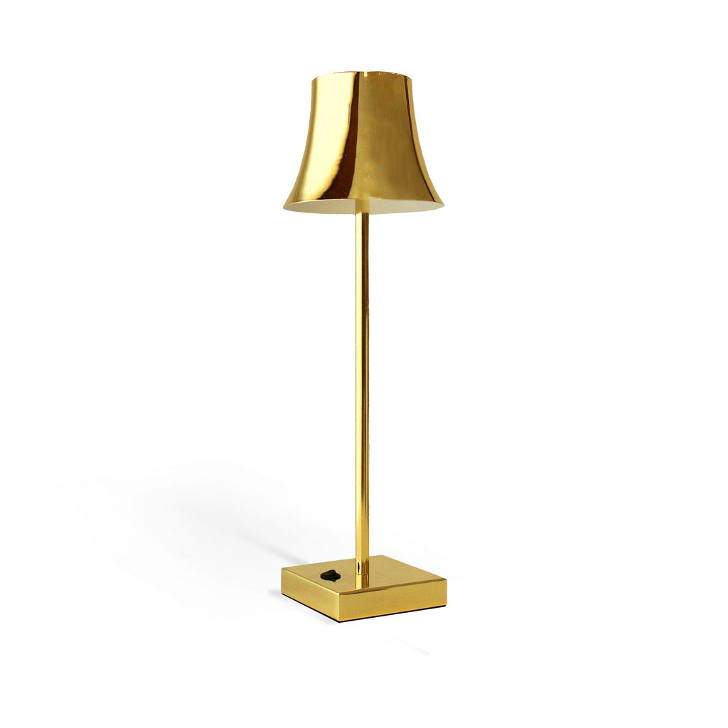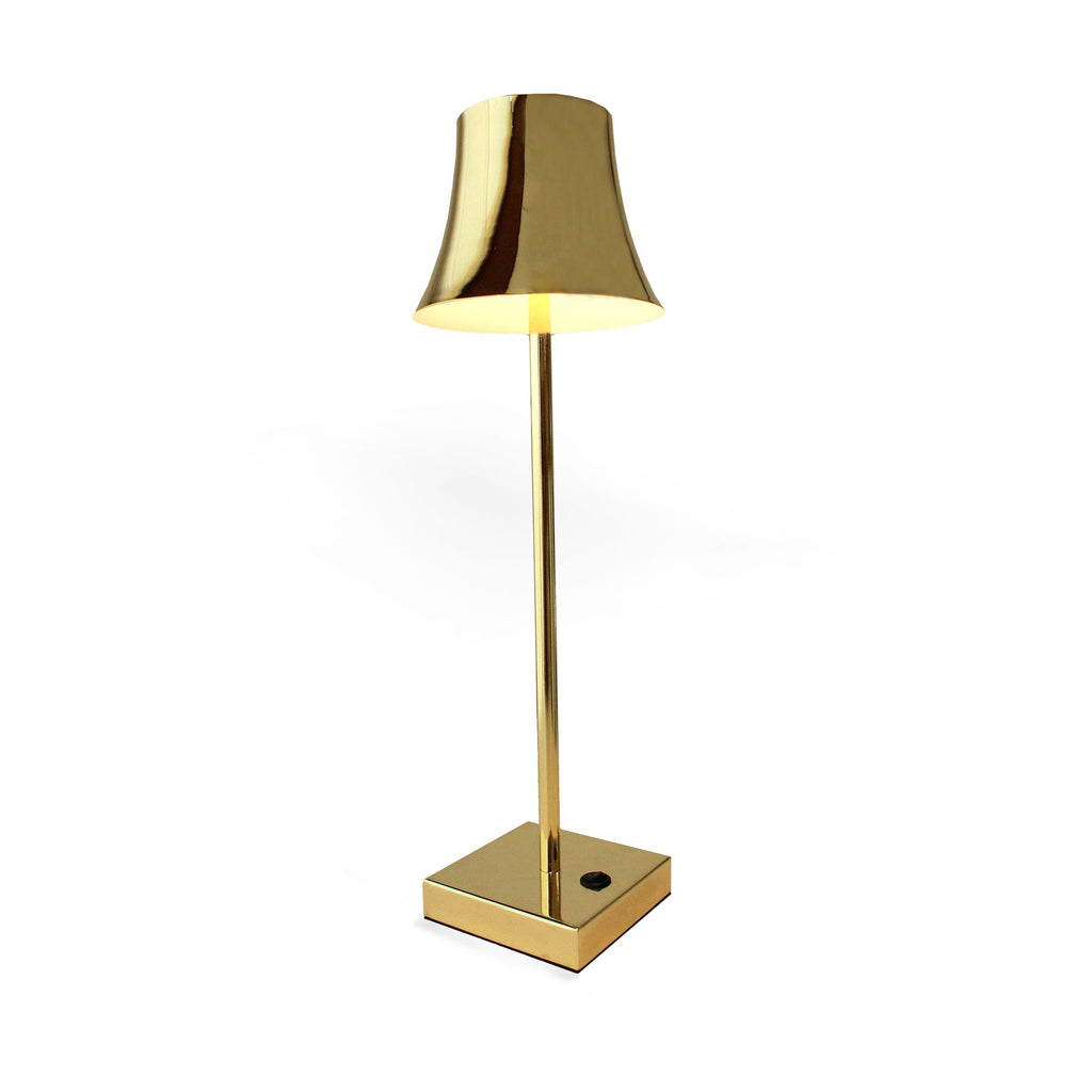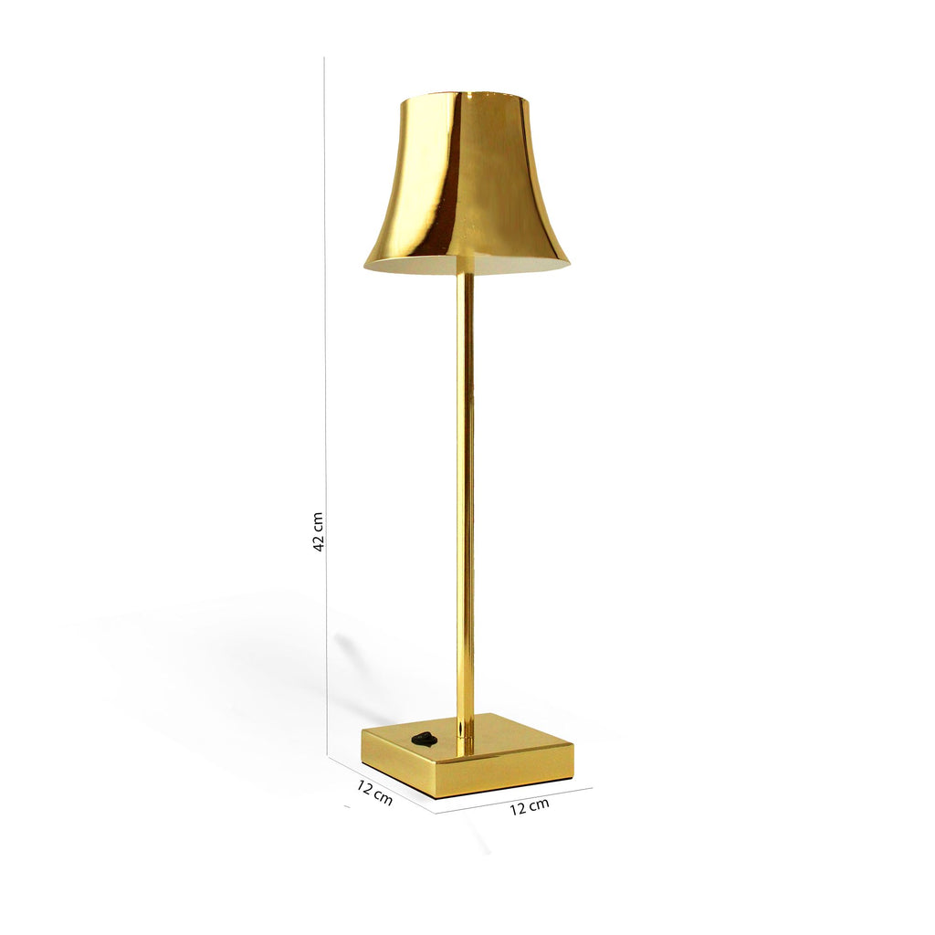 Lampada da tavolo in metallo verniciato oro, lampadine led luce naturale. Ricarica con cavo USB.