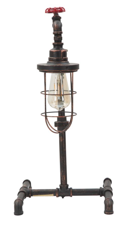 Lampe de table Manhattan/Cage 27x27x56 cm en cuivre noir et fer rouge