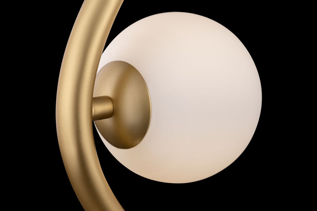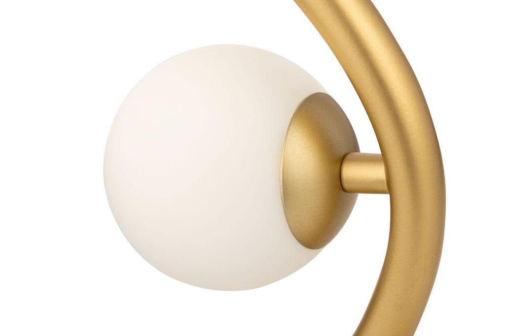 Les diffuseurs en verre opale sont posés sur la structure métallique en forme de vague. Les modèles standards sont présentés en or et chrome.