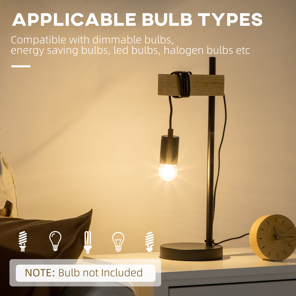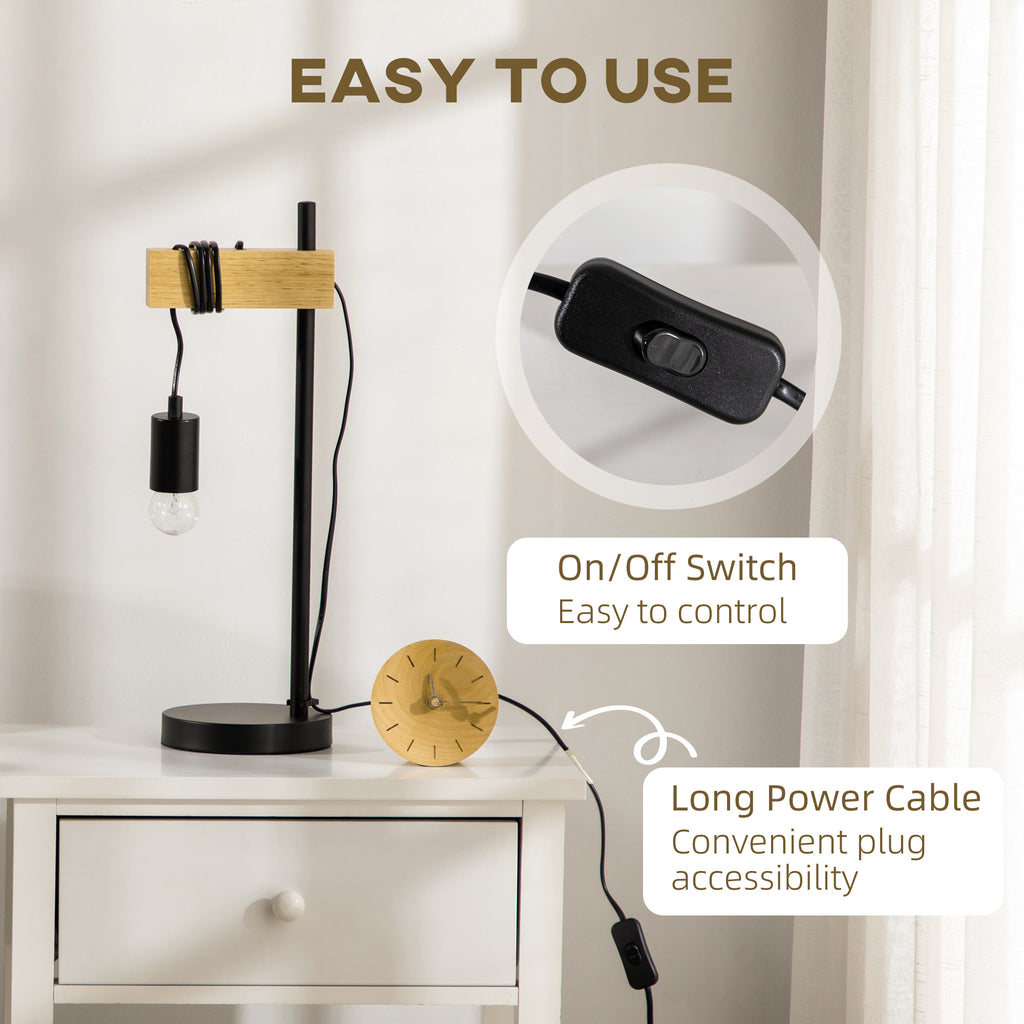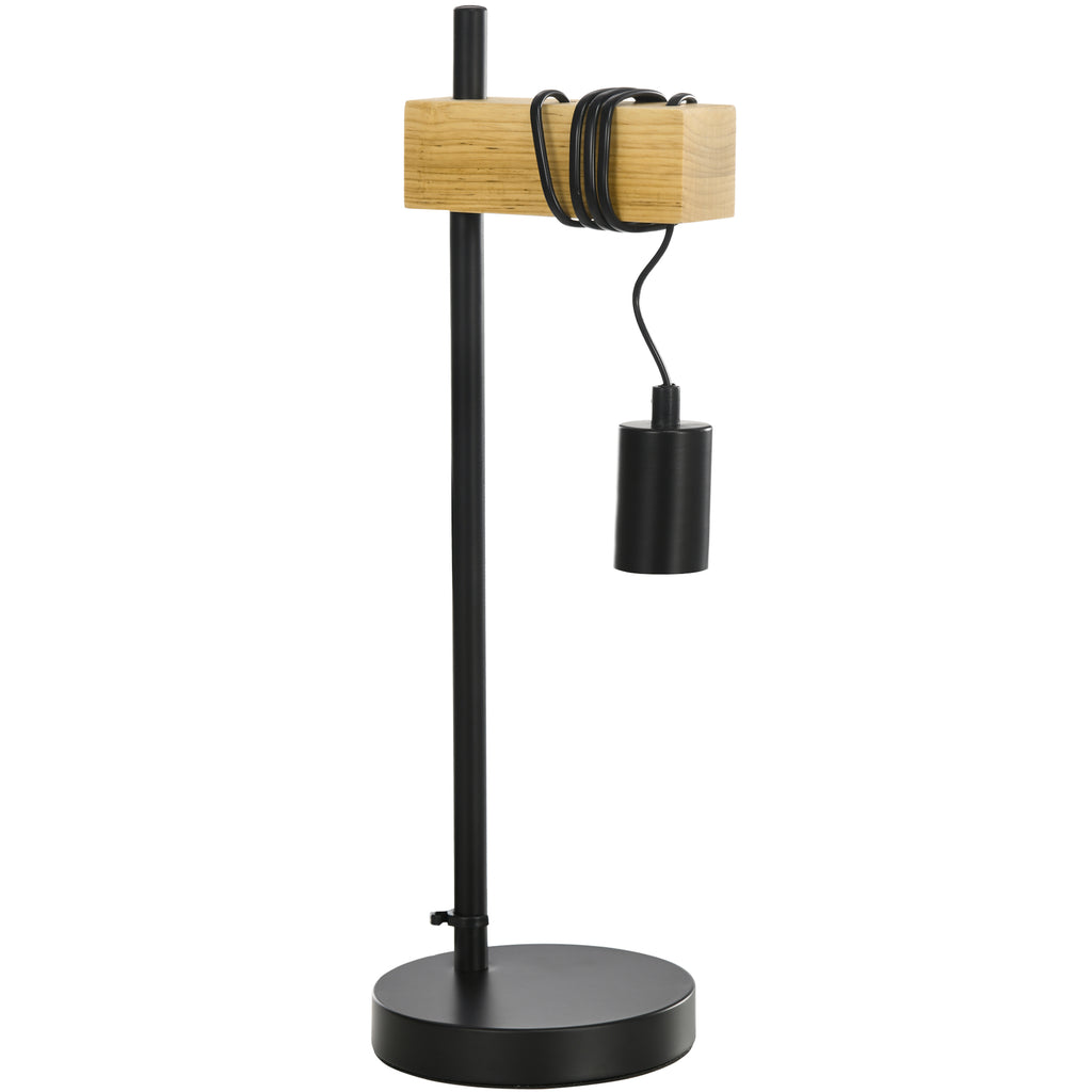 Lampada da Tavolo Ø20x30,5 cm Senza Paralume in Legno e Acciaio Nero e Naturale