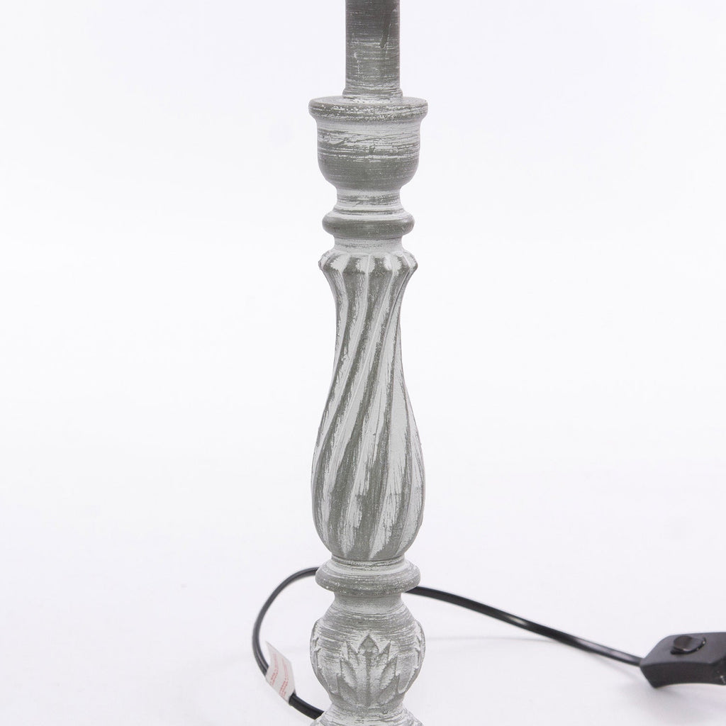 Lampada da tavolo grigia in MDF con paralume bianco smontabile in design classico. Lampadina non inclusa. Accensione/spegnimento tramite interruttore a levetta sul cavo