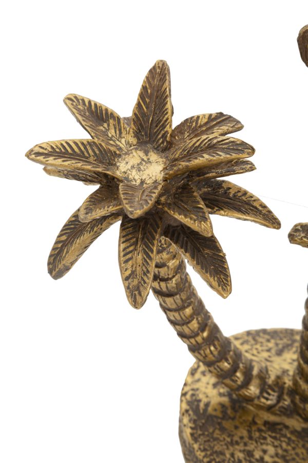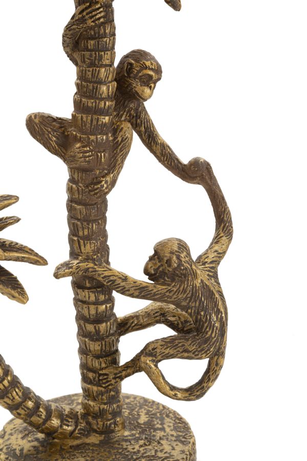 - La lampada da tavolo è decorativa con una struttura dorata che raffigura una palma da cocco e scimmiette
