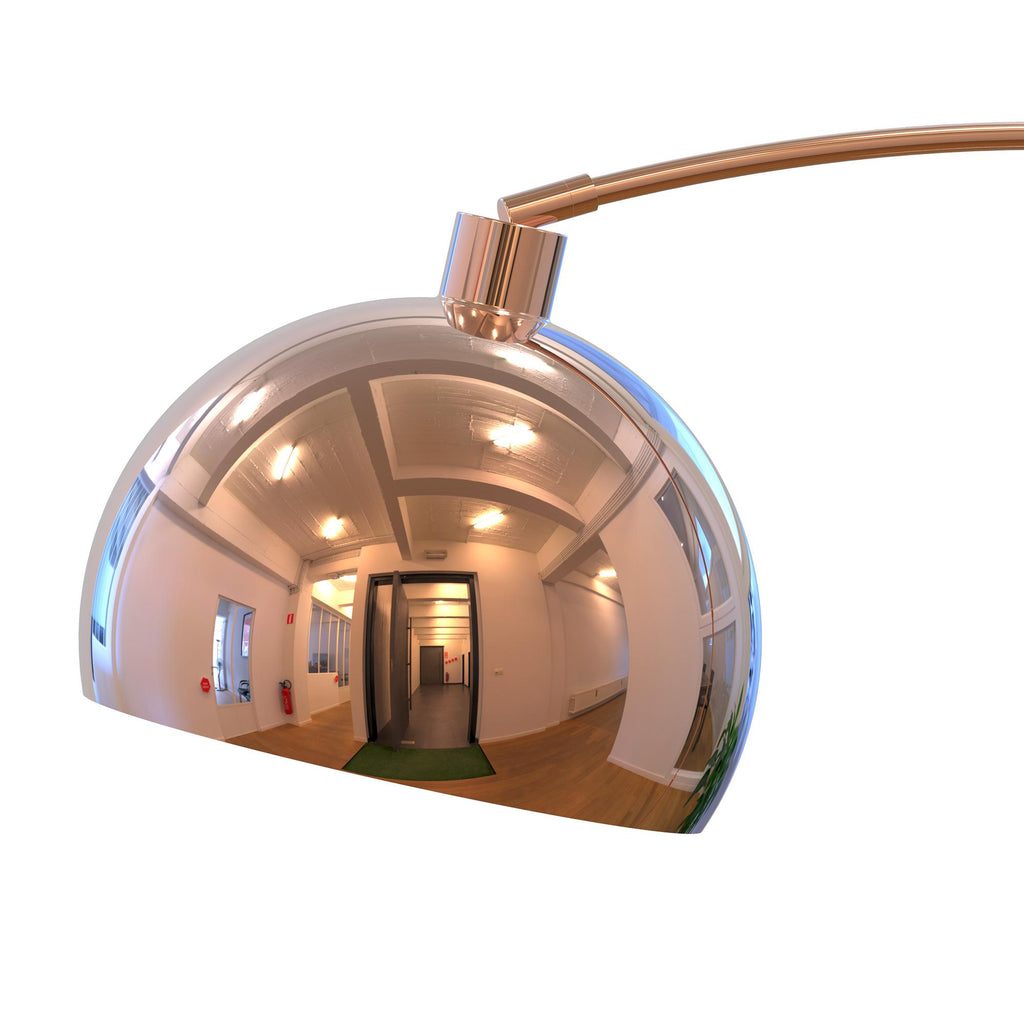 Lampadaire Arc avec abat-jour E27 en acier et marbre cuivré