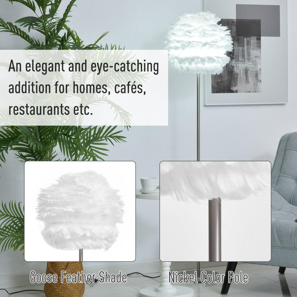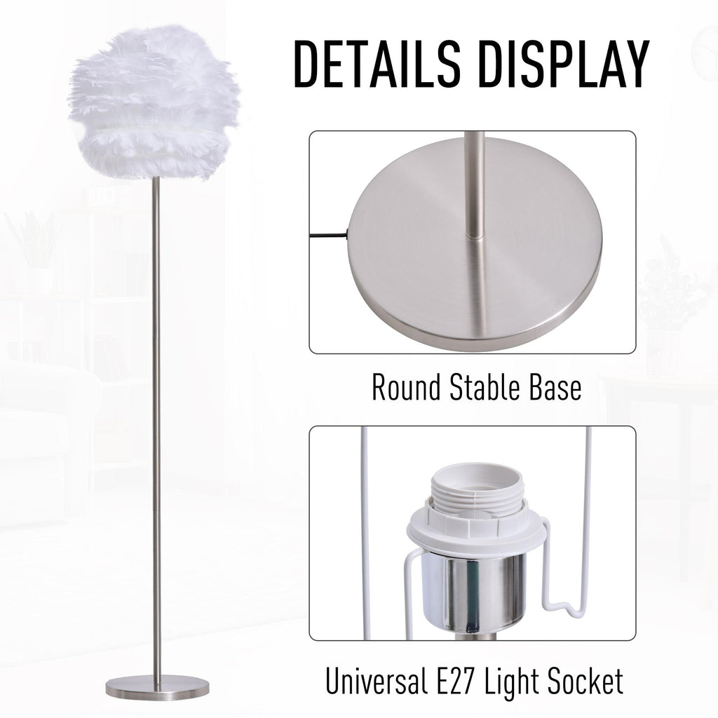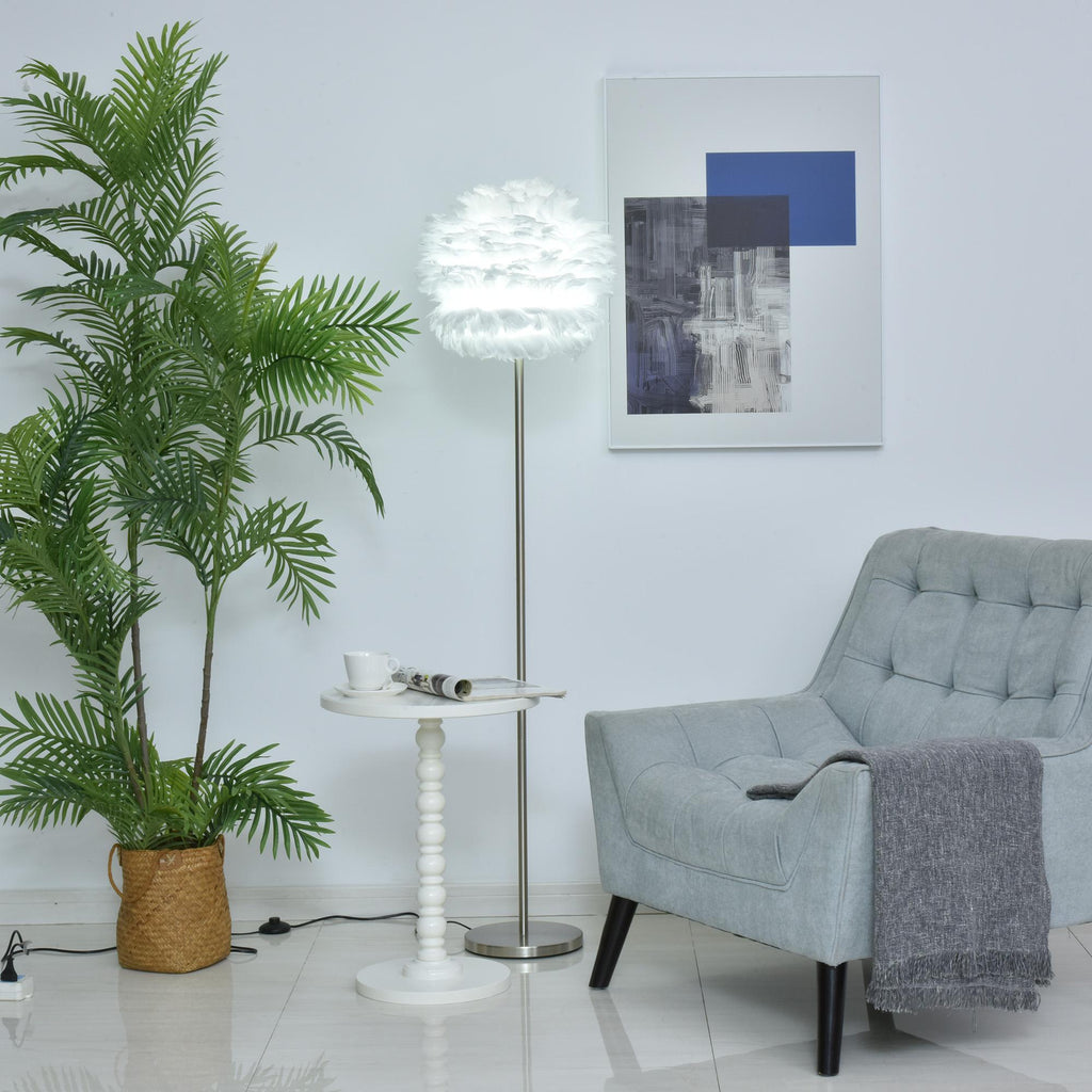 Lampadaire avec abat-jour E27 en plumes blanches
