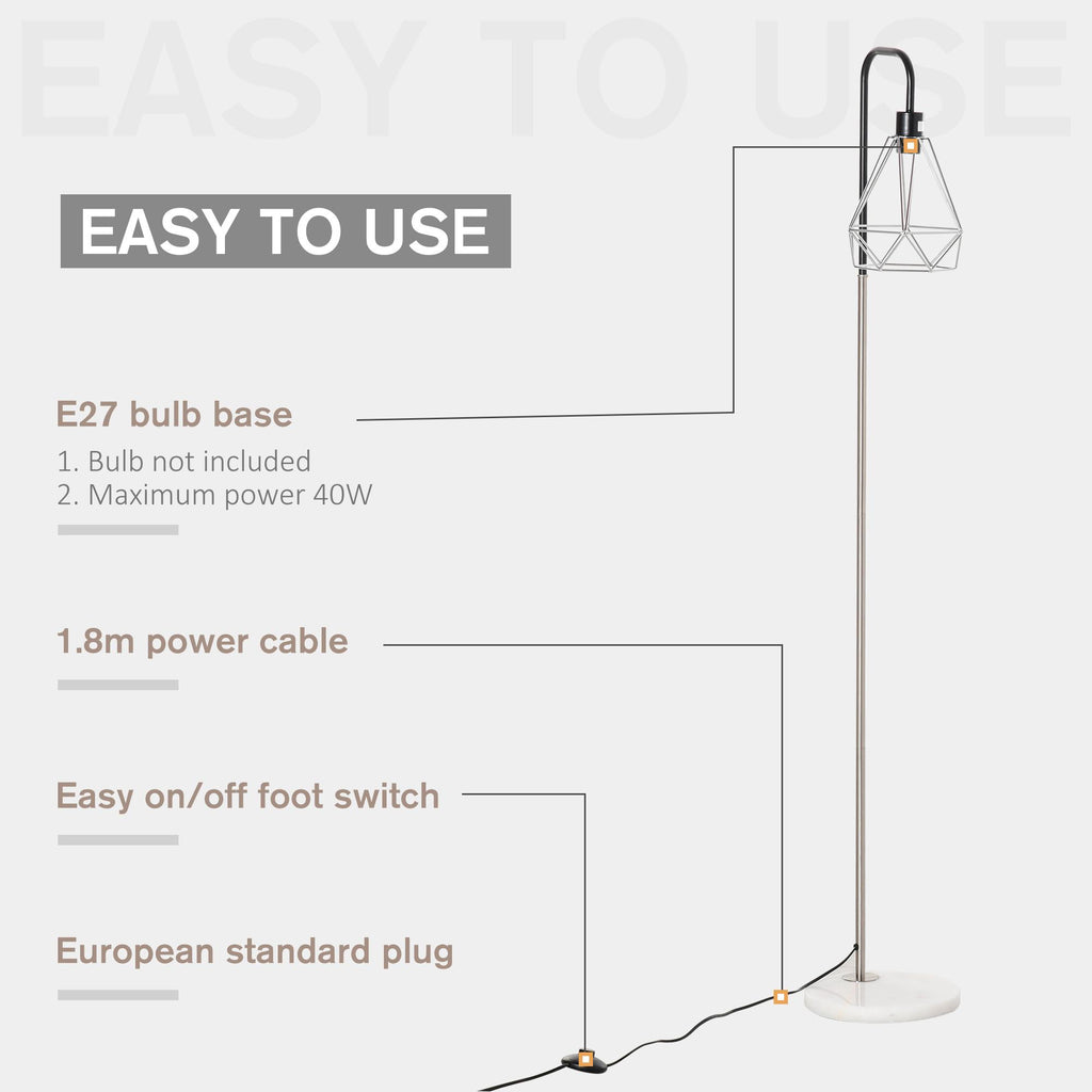 Apportez un éclairage élégant à votre maison et votre bureau avec ce lampadaire. Le mât en métal est résistant et la base en marbre assure une stabilité maximale, tandis que l'abat-jour en fil de fer lui donne une touche originale. Facile à utiliser grâce à la pédale pratique, ce lampadaire est parfait pour éclairer vos pièces avec style.