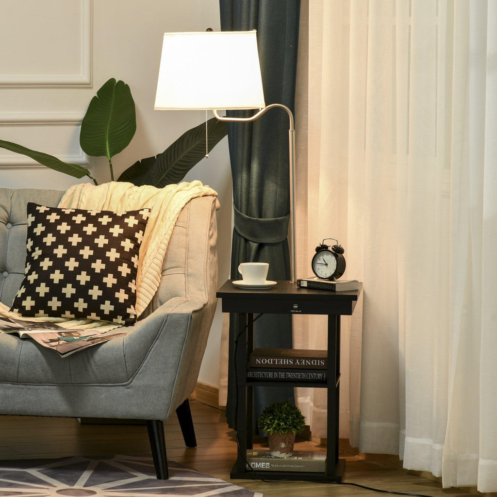 Lampadaire avec Table et 2 Prises USB 44,5x44,5x144,5 cm en Métal Noir