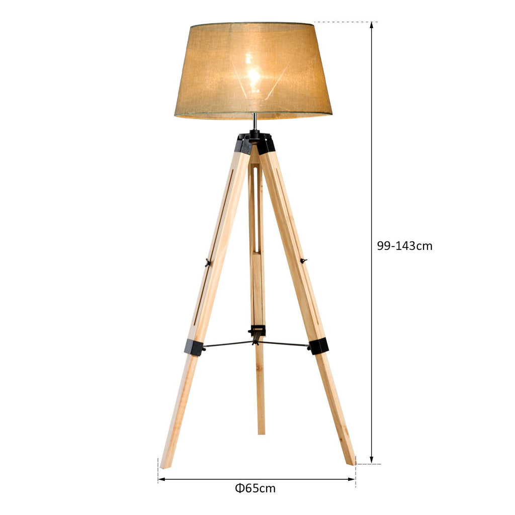 Lampadaire Design avec Trépied en Bois Réglable en Hauteur Beige